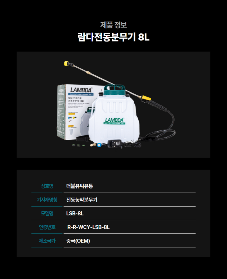 | 제조자(수입자) | 람다 | 제조국 | 중 |
