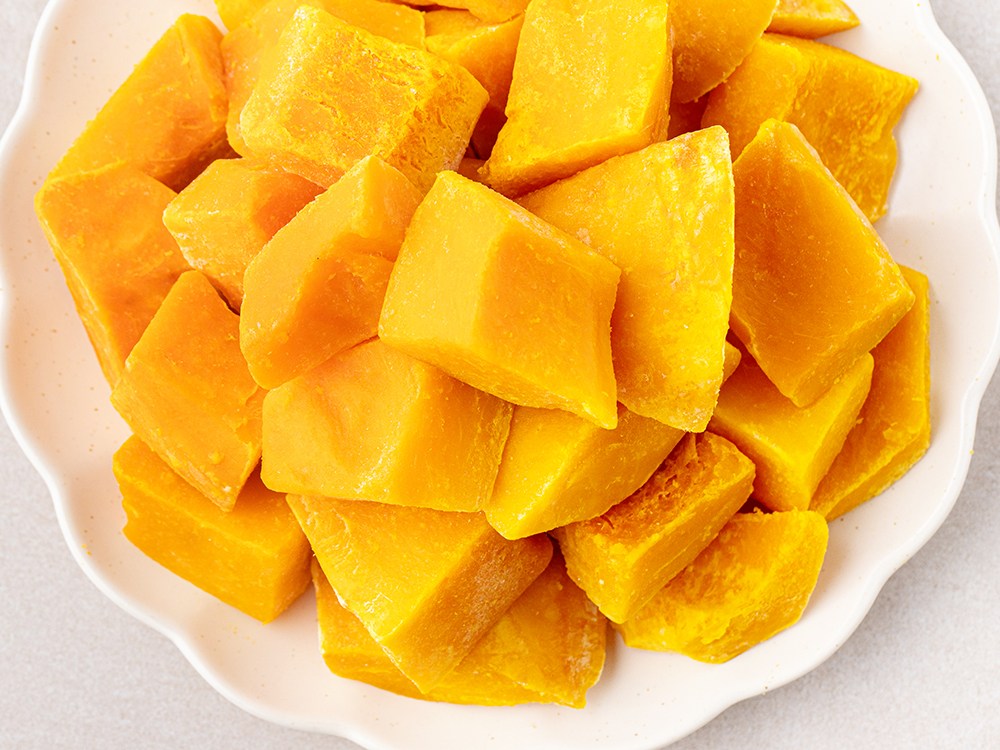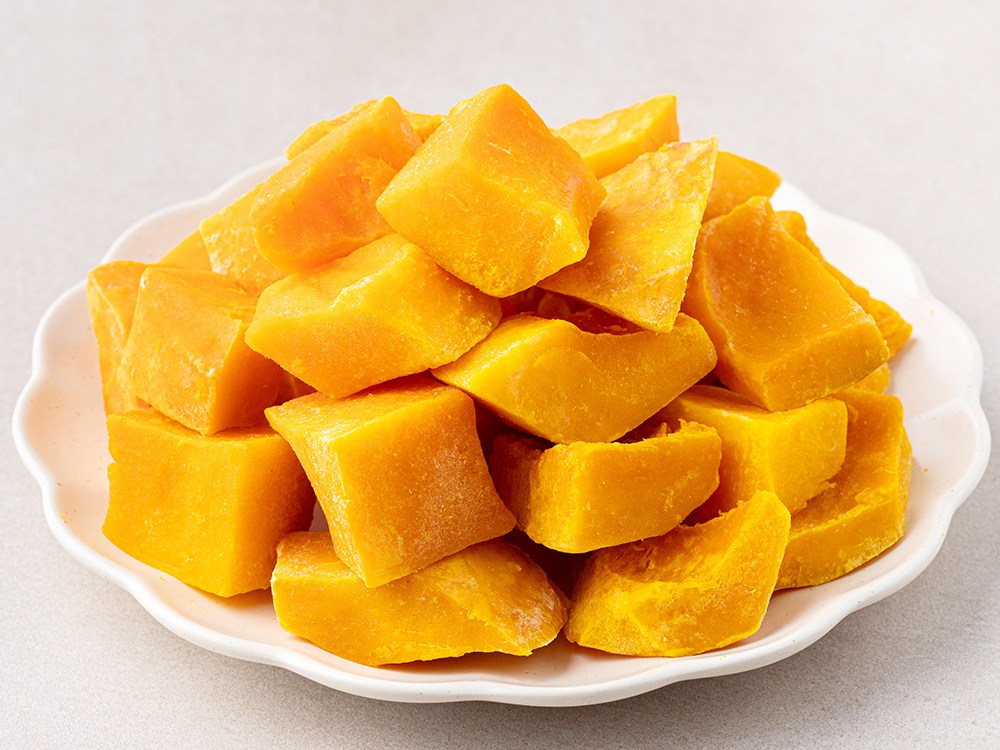 단호박은 맛있지만 손질하는 과정이 번거로운데요. 껍질은 제거하고 깍둑썰기한 단호박으로 간편하게 즐겨보세요. 특유의 은은한 단맛을 그대로 품고 있어 맛있게 드실 수 있답니다. 깨끗이 씻어 볶음밥이나 죽의 재료로 활용해도 좋고요. 부드러운 단호박죽을 만들어도 맛있어요.