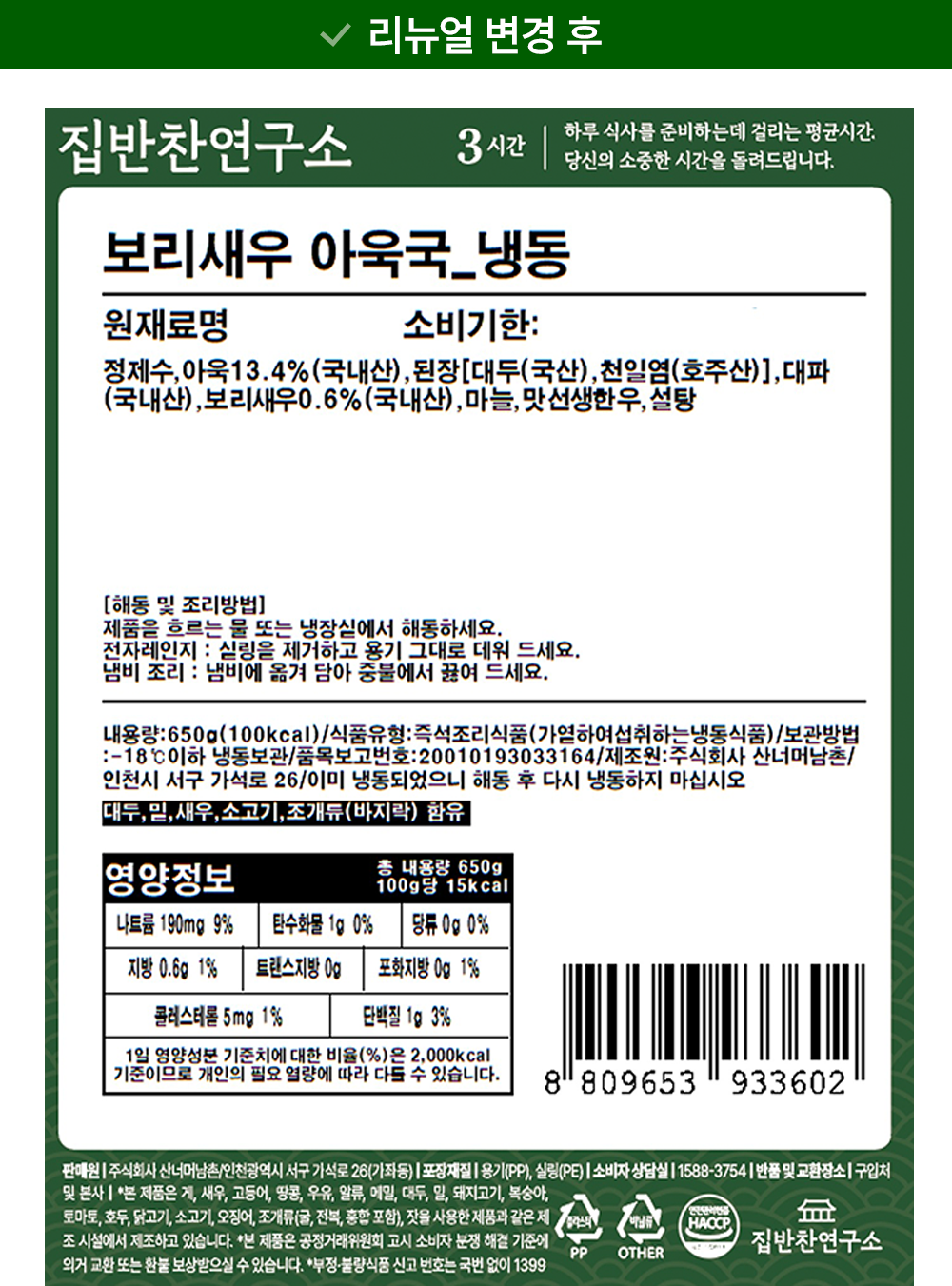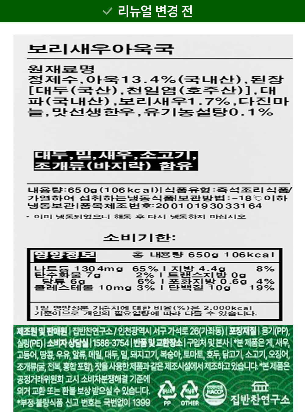 | 제품명 | 보리새우 아욱국 | 식품의 유형 | 컨텐츠참조 |