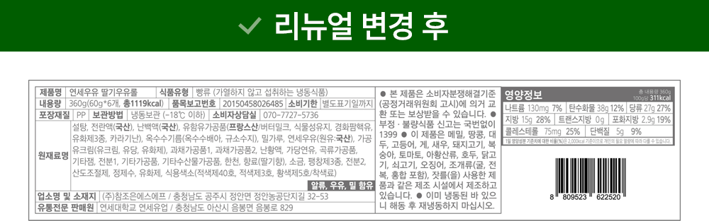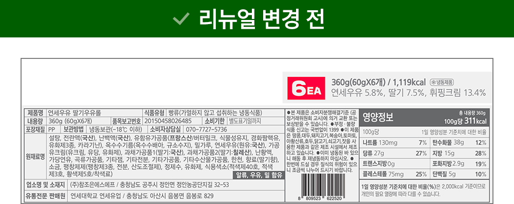 | 제품명 | 연세우유 딸기우유롤 | 식품의 유형 | 컨텐츠 참조 |