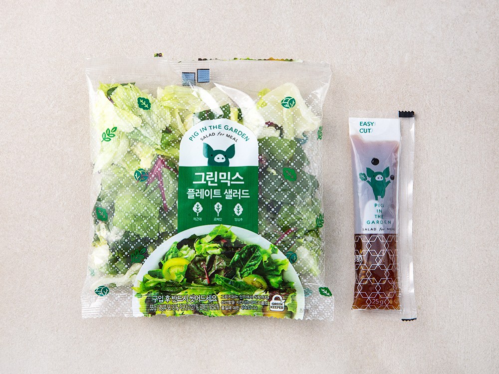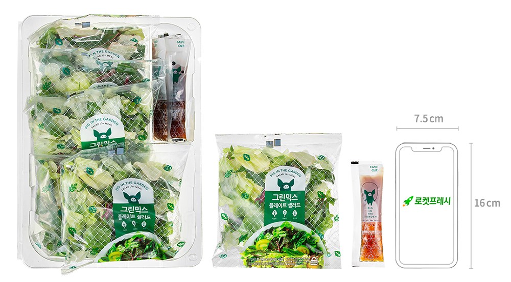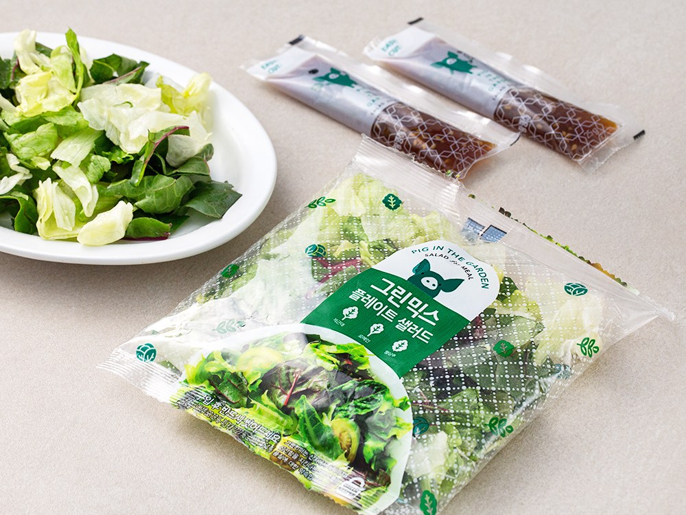 샐러드 채소와 오리엔탈 드레싱이 1봉지씩 소포장되어 활용이 간편하며, 위생적으로 보관할 수 있어요.