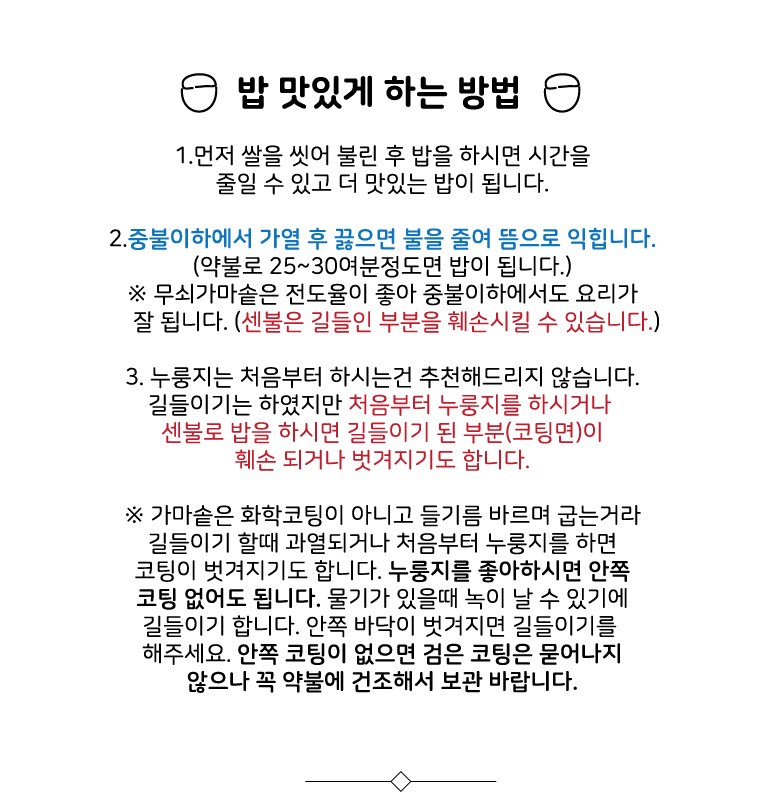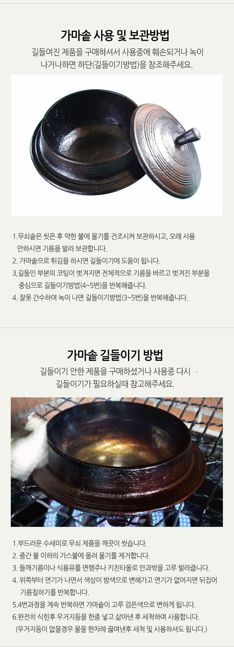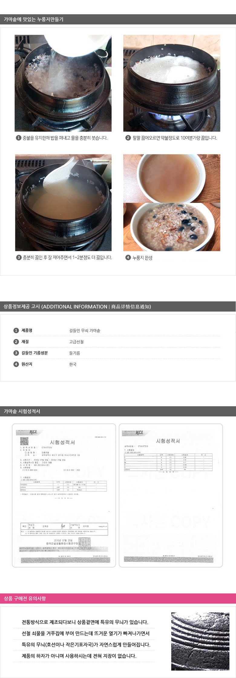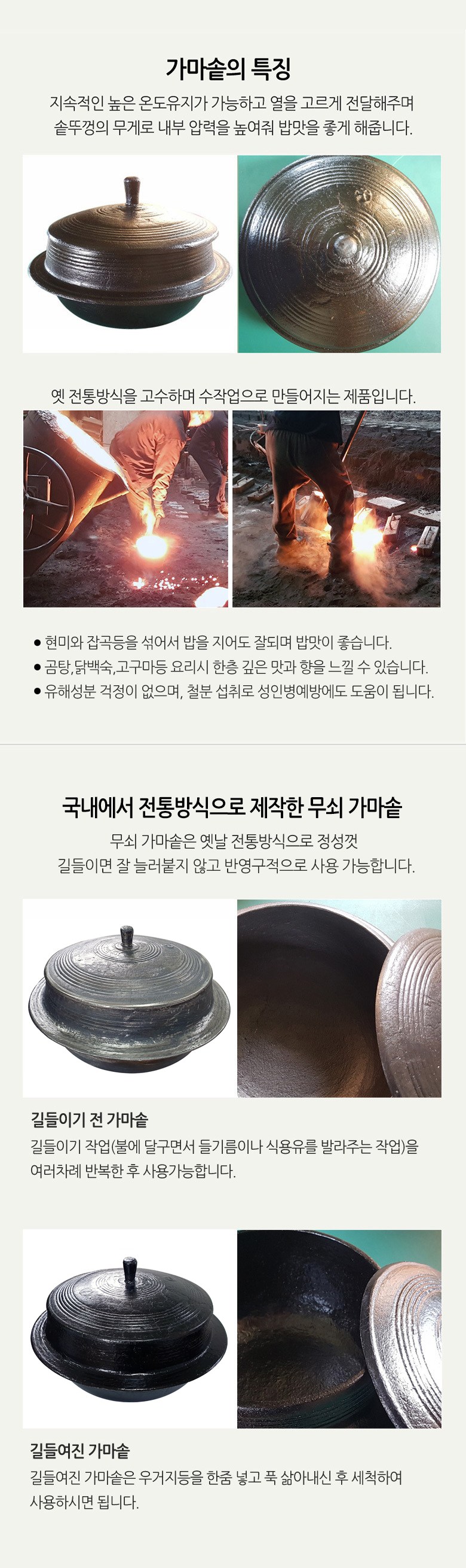 | 품명 및 모델명 | 무쇠 가마솥 | 재질 | 무쇠(고급 선철)_현대제철 |