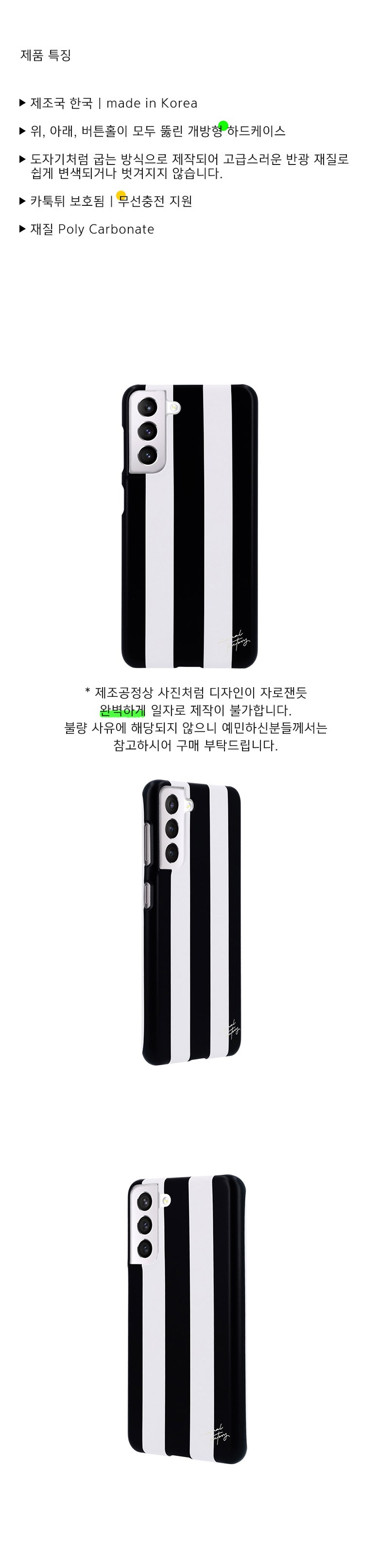 | 품명 및 모델명 | 휴대폰케이스/비주얼팩토리 버티컬 블랙화이트 갤럭시S21플러스 하드 휴대폰케이스 | 인증/허가 사항 | 해당없음 |
