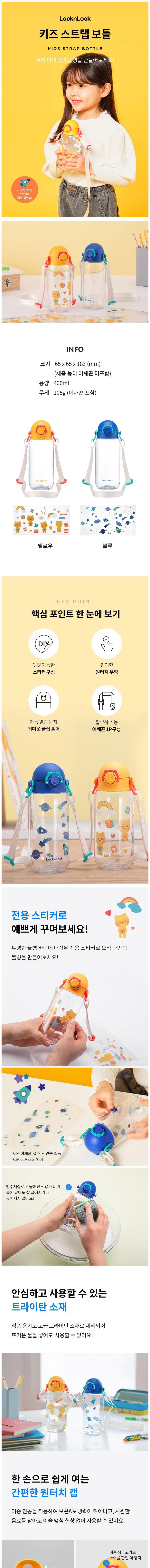 | 품명 및 모델명 | 락앤락 키즈스트랩 보틀 ABF777YEL | KC 인증정보 | 스티커 : CB061A236-7001 |