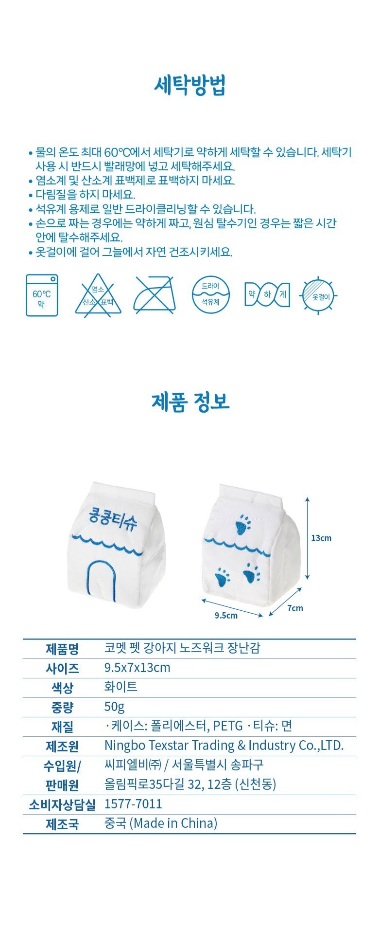 | 제조국(원산지) | 중국 | 제조자(수입자) | Ningbo Texstar Trading & Industry Co.,LTD. / 씨피엘비 주식회사 |