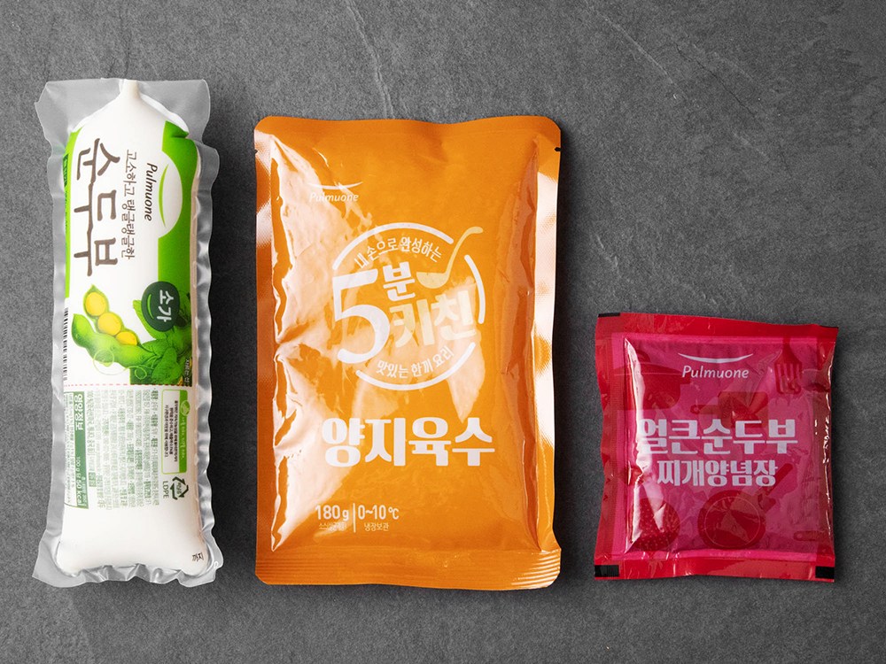 순두부, 육수, 양념장으로 구성되어있습니다.