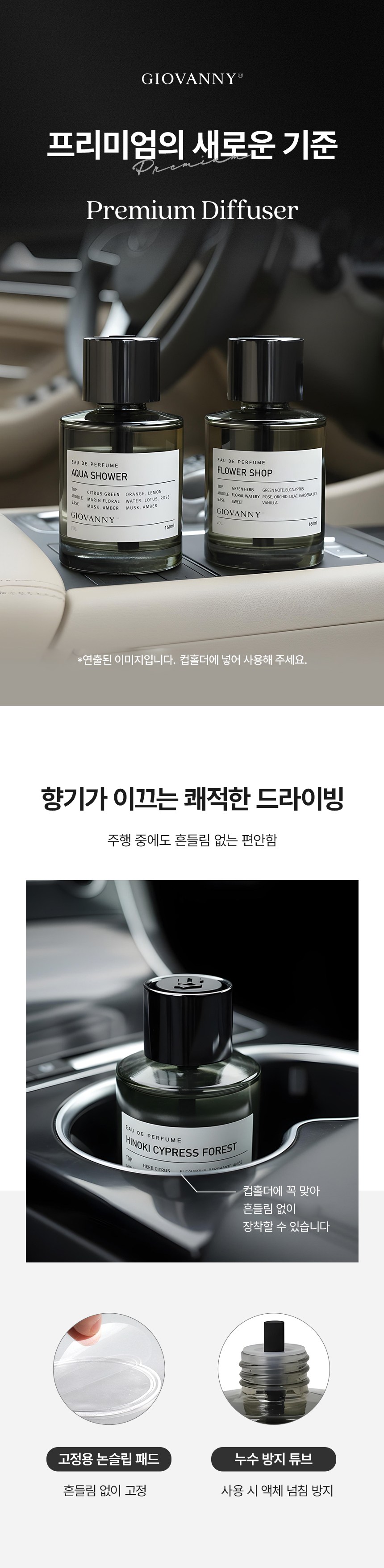 | 품목 및 제품명 | 방향제 / 지오바니 디퓨저(화이트머스크1) | 용도(표백제의 경우 계열을 함께표시) 및 제형 | 자동차용(실내용), 일반용(실내공간용, 섬유용, 가죽용) / 액체형 |