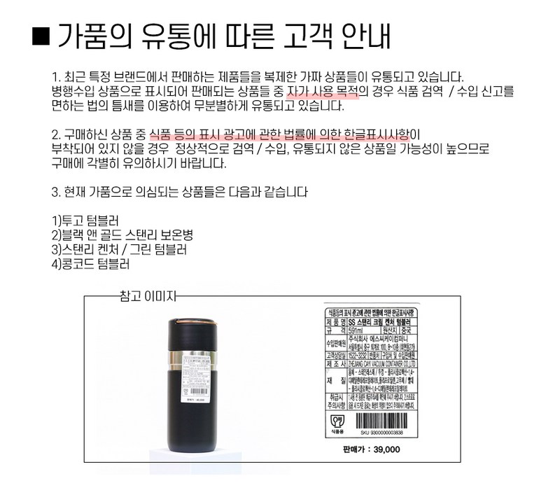 판매 부적격 상품 또는 허위과장광고 및 지식재산권을 침해하는 상품의 경우 신고하여 주시기 바랍니다.