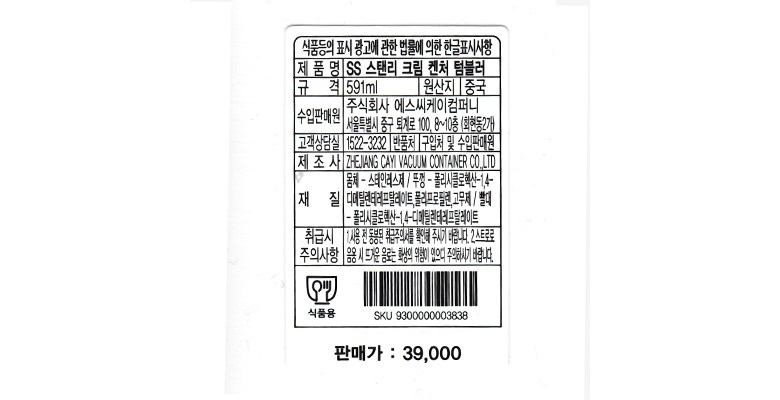 | 출시년월 | 상시판매상품 | 제조자(수입자) | 제조자:ZHEJIANG CAYI VACUUM CONTAINER CO.,LTD. / 수입자:(주)에스씨케이컴퍼니 |