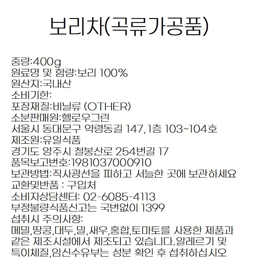 | 제품명 | 옥수수차+보리차 | 식품의 유형 | 컨텐츠 참조 |