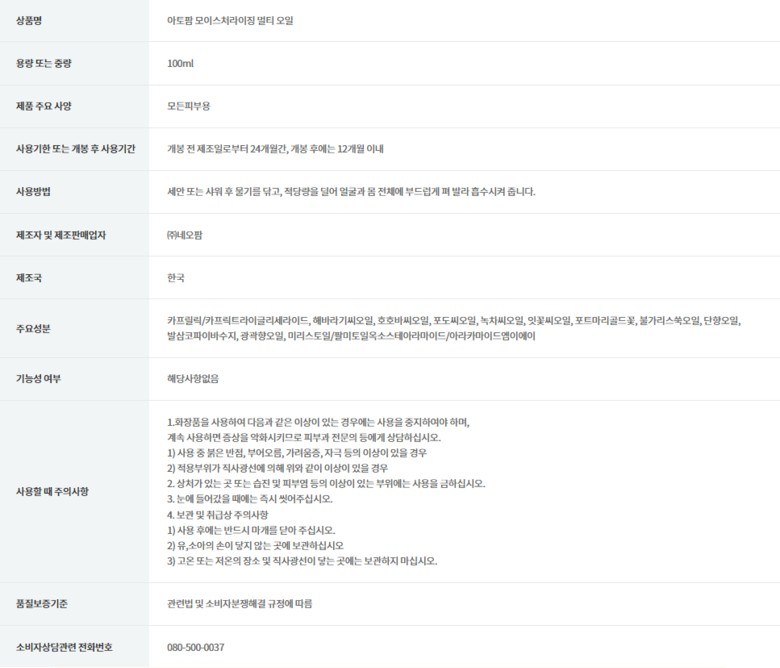 | 소비자상담 관련 전화번호 | 상품 상세페이지 참조 | ||
