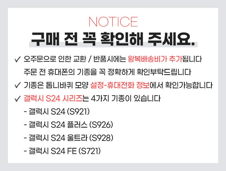 - ㆍ모니터 해상도의 차이로 인해 색상이나 이미지가 실제와 달라, 고객이 단순 변심으로 교환/반품을 무료로 요청하는 경우