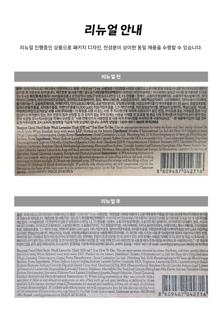 | 화장품제조업자, 화장품책임판매업자 및 맞춤형화장품판매업자 | 컨텐츠 참조 | 제조국 | 대한민국 |