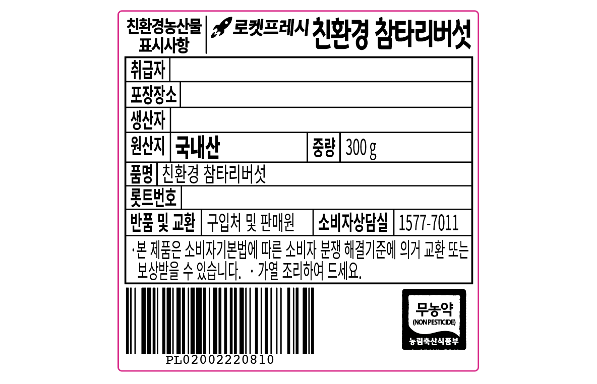 | 품목 또는 명칭 | 곰곰 친환경 참타리버섯 | 포장단위별 내용물의 용량(중량),수량,크기 | 300gx6개 |