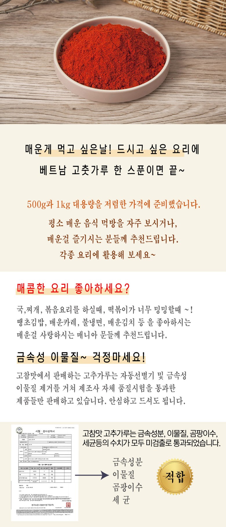 고참맛 베트남100% 고추가루 엄청매운맛 땡초 아주매운맛 Spicy red pepper powder, 500g, 1개