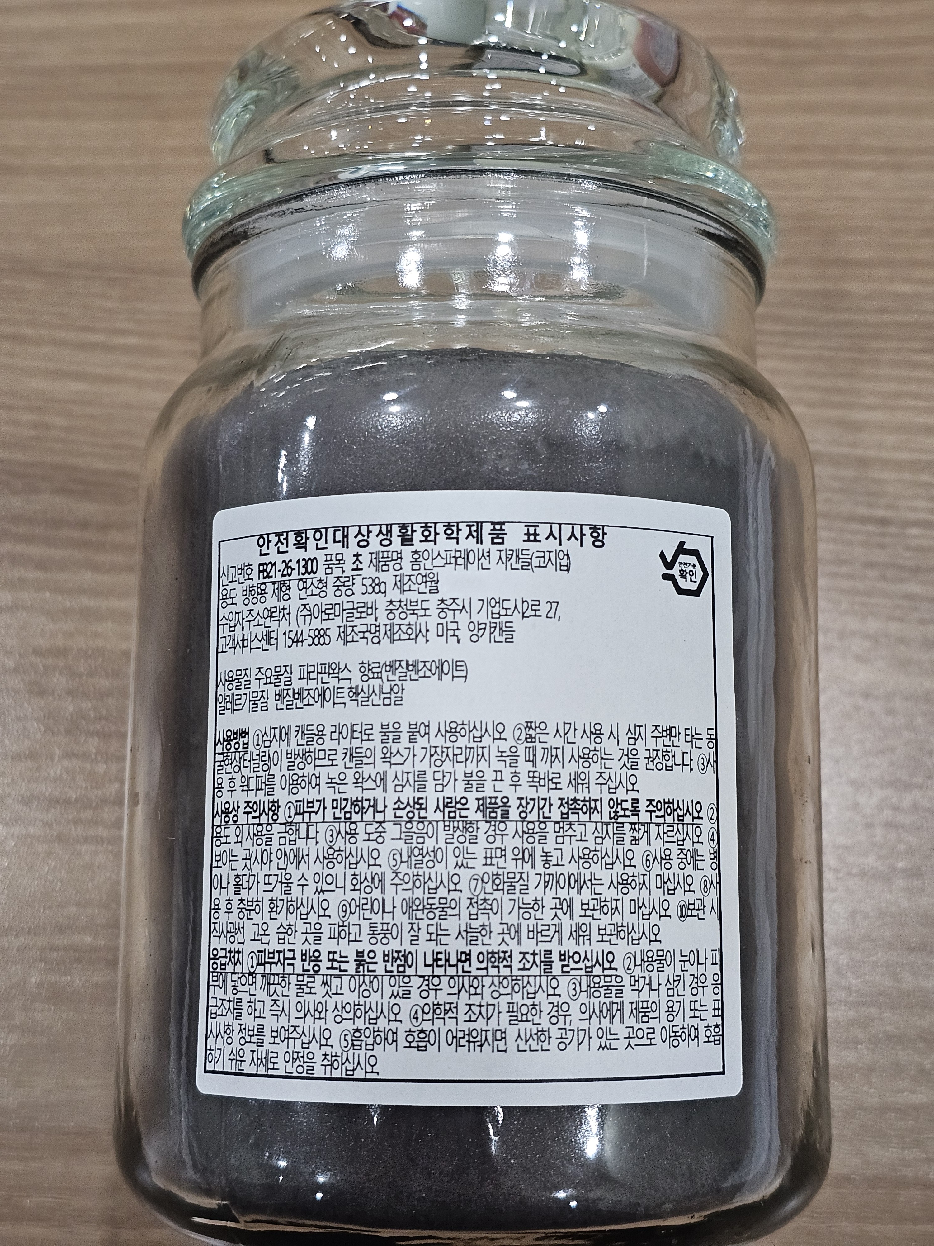 | 품목 및 제품명 | 초/홈인스퍼레이션 자캔들(코지업) | 용도(표백제의 경우 계열을 함께표시) 및 제형 | 방향용/분사형-연소형 |