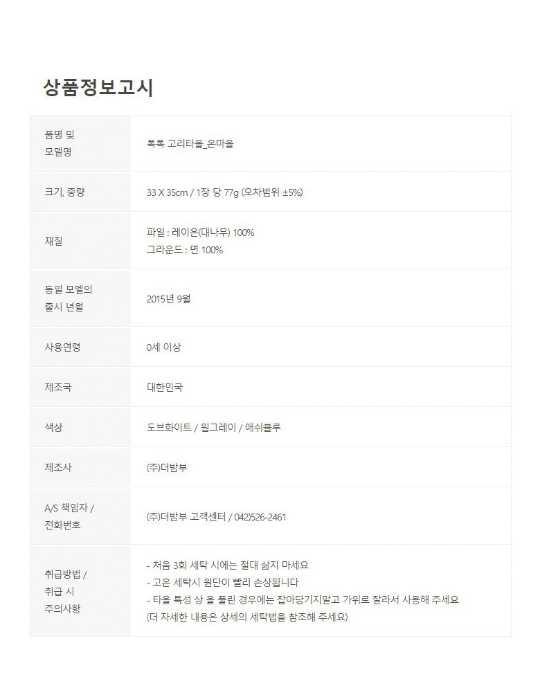 | 품명 및 모델명 | 밤부베베 톡톡 온마을 고리타올 3종 세트 | KC 인증정보 | CB015F0005-9004 |