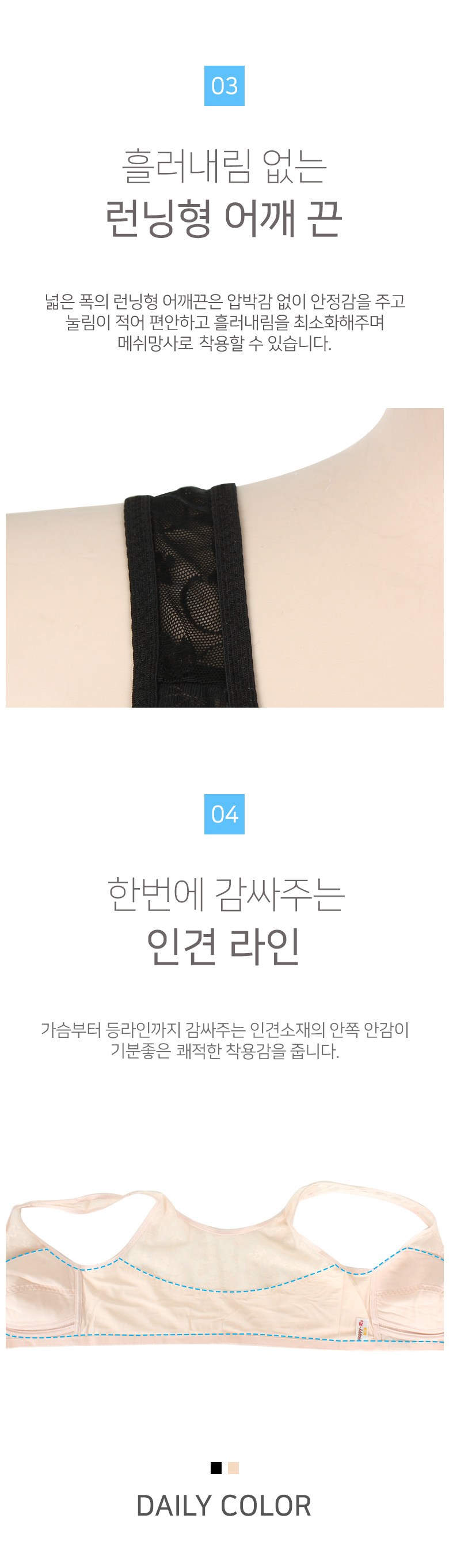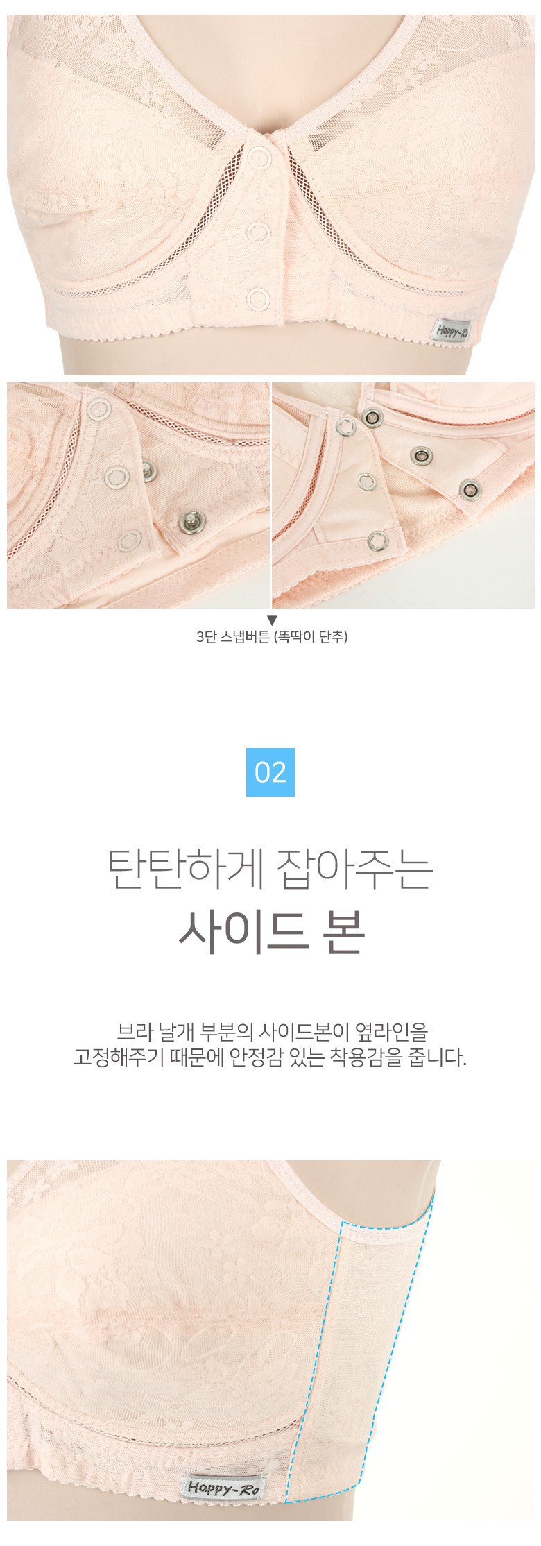 해피로 인견 쟈가드 노와이어 앞버튼 브라탑