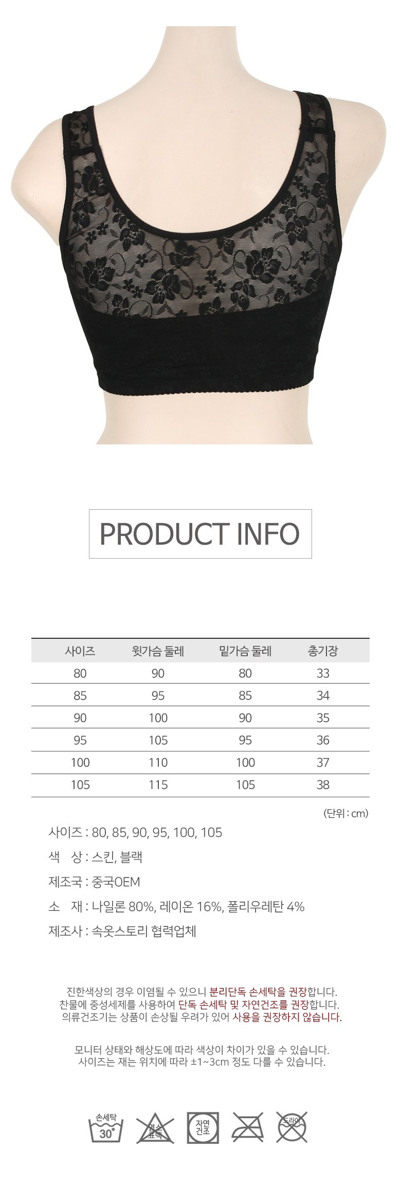 | 치수 | 컨텐츠 참조 | 제조자(수입자) | 속옷스토리 협력업체(업체 정보 미제공으로 정확한 제조사 확인 불가) |