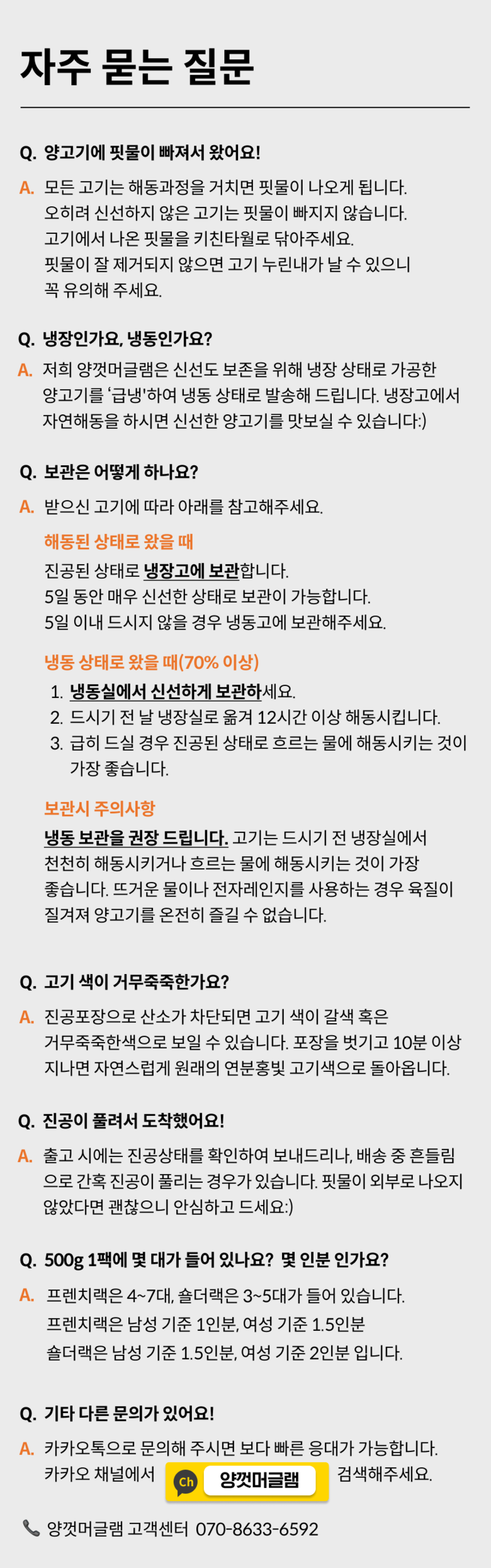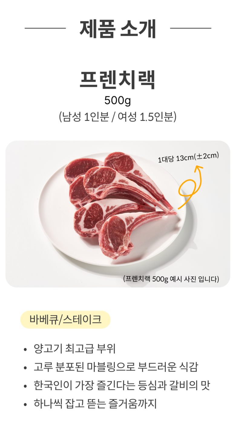 | 품목 또는 명칭 | Tender9 프렌치랙 500g | 포장단위별 내용물의 용량(중량),수량,크기 | 500g * 4팩 |