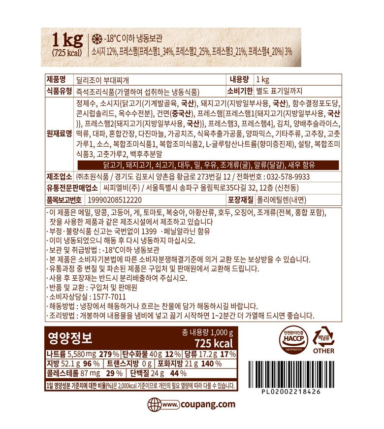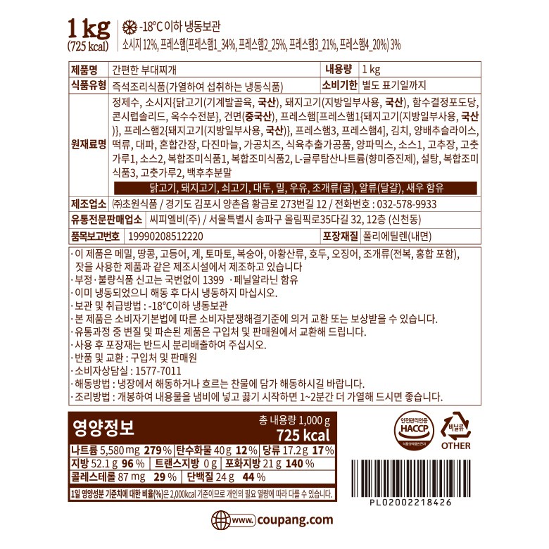 | 제품명 | 간편한 부대찌개 | 식품의 유형 | 컨텐츠 참조 |
