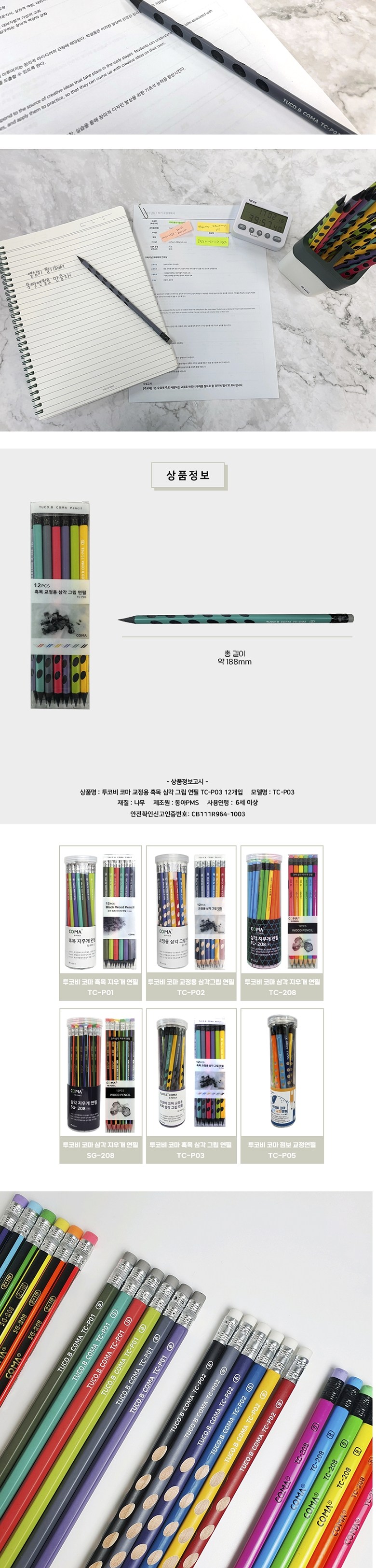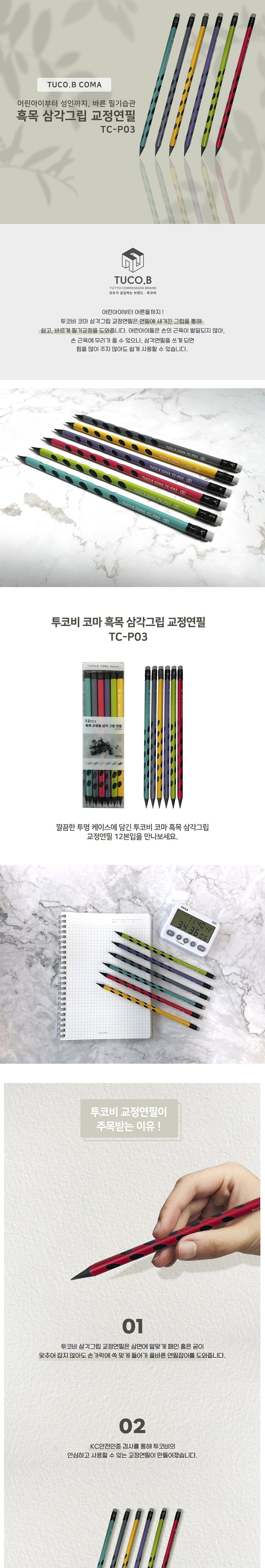 | 품명 및 모델명 | 투코비 코마 흑목 삼각 교정연필 B TC-P03 | KC 인증정보 | CB111R964-1003 |