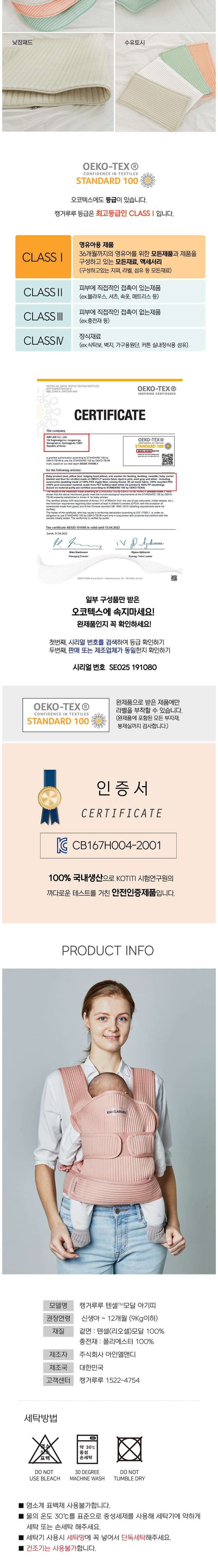 | 품명 및 모델명 | 아기띠 / 캥거루루 텐셀 모달 아기띠 | KC 인증정보 | CB167H004-2001 |