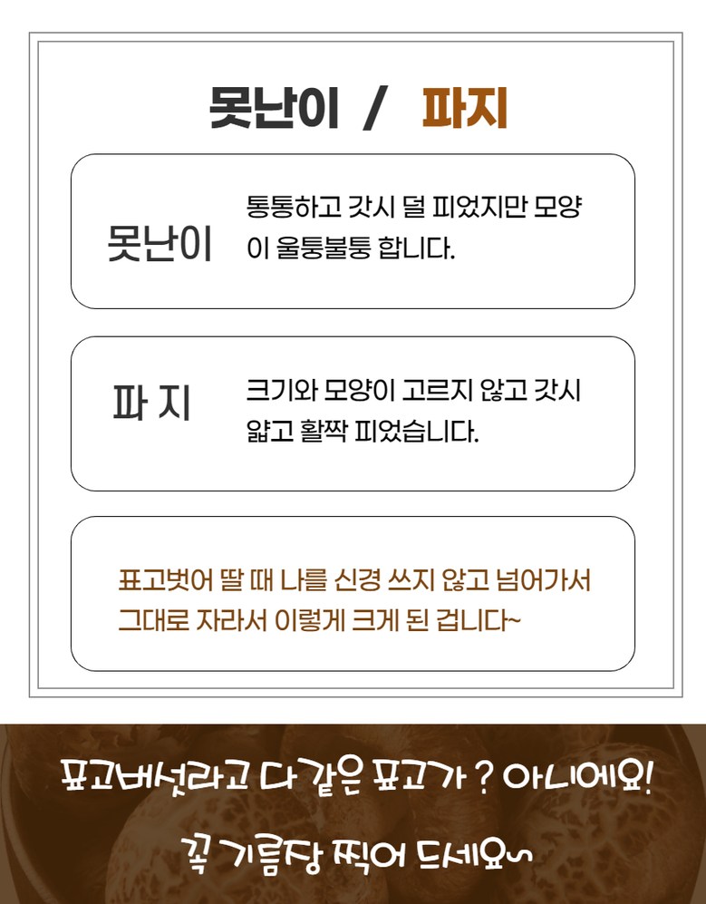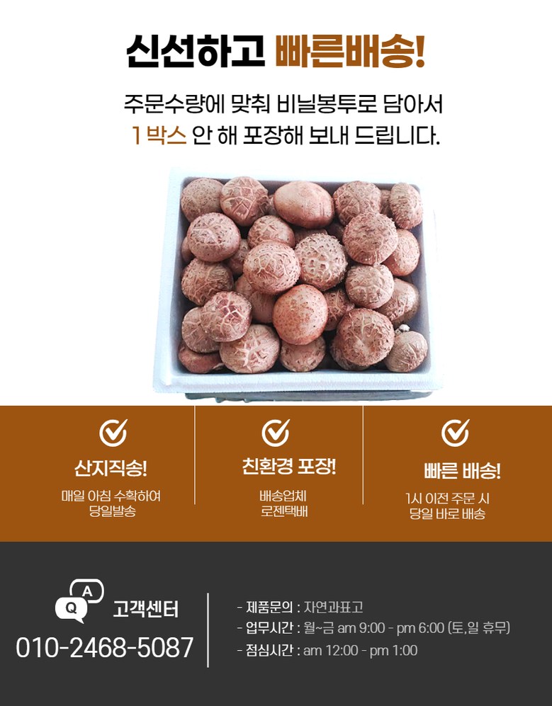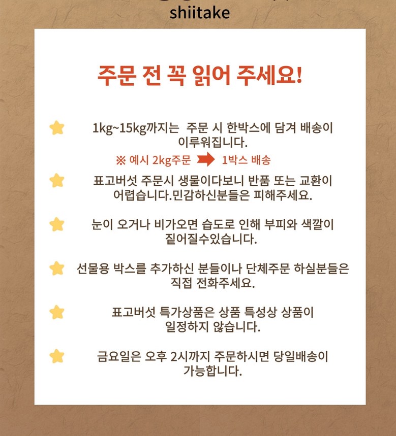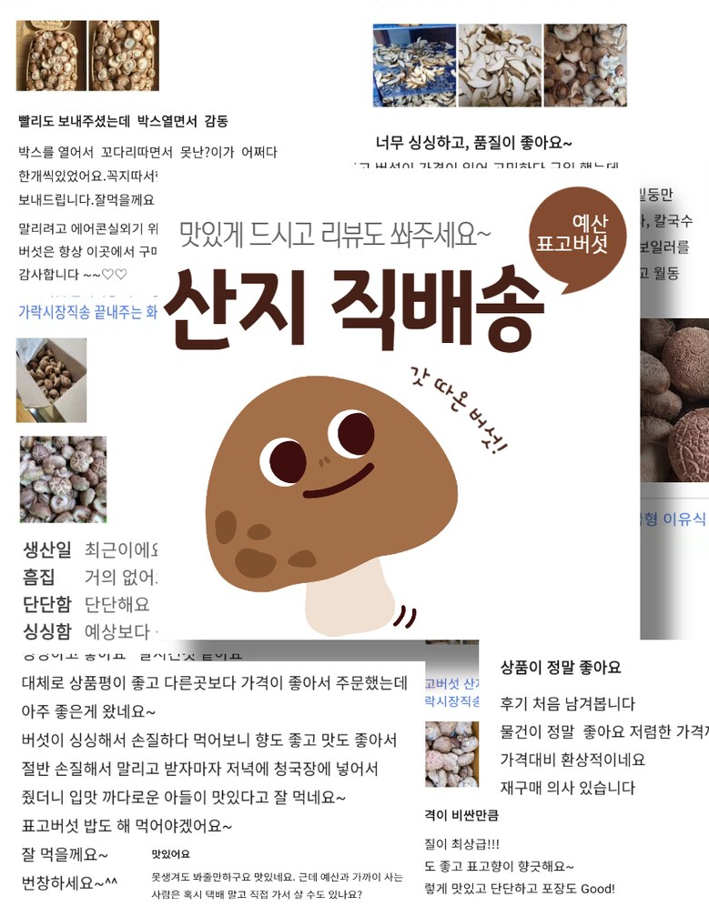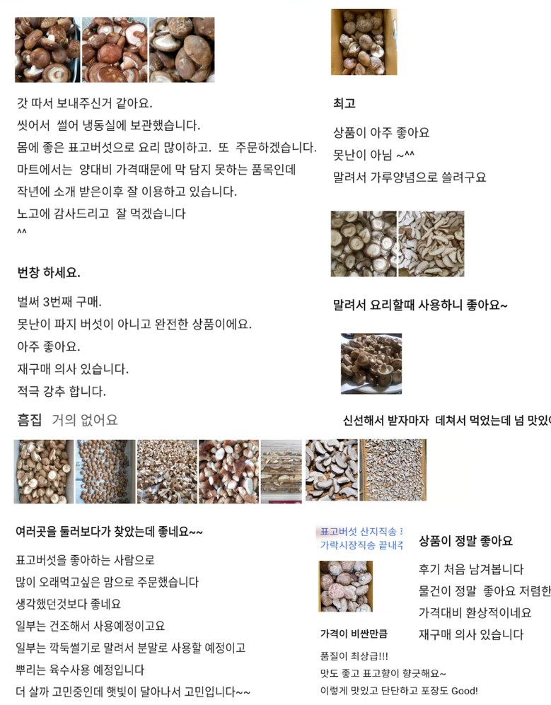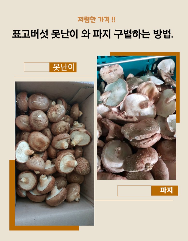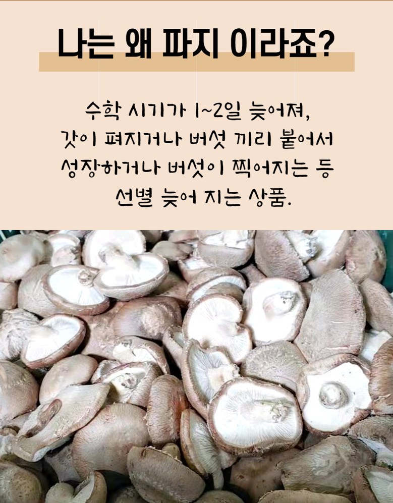 | 품목 또는 명칭 | [예산농장-생 표고버섯] 파지 산지직송 | 포장단위별 내용물의 용량(중량),수량,크기 | 상품 상세페이지 참조 |