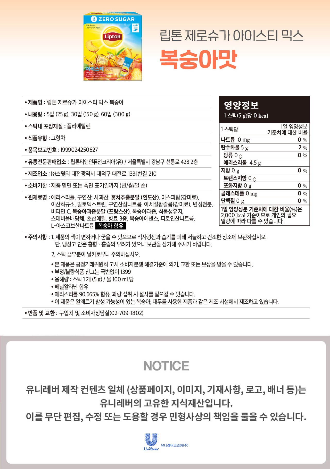 - 섭취방법: 즉석섭취음료
