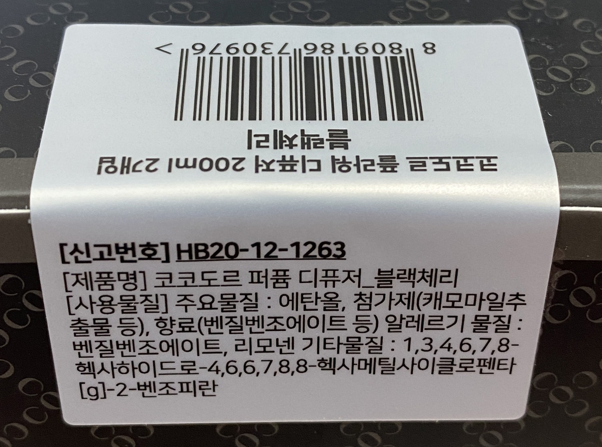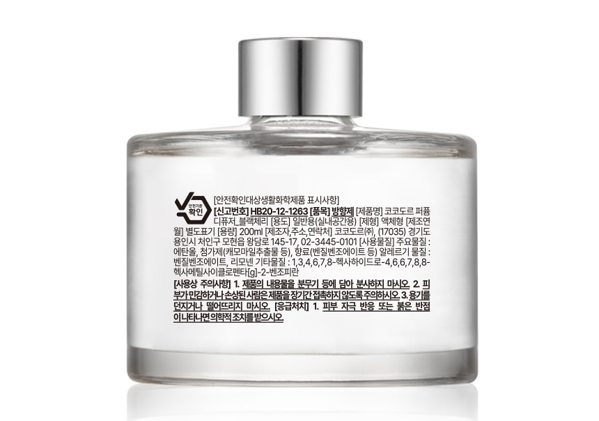 | 품목 및 제품명 | 방향제 / 코코도르 퍼퓸 디퓨저_블랙체리 | 용도(표백제의 경우 계열을 함께표시) 및 제형 | 일반용(실내공간용)/액체형 |