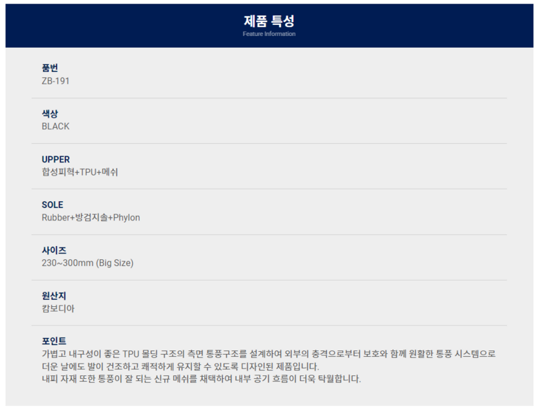 | 제조국(원산지) | 상품 상세페이지 참조 | 제조자(수입자) | 상품 상세페이지 참조 |