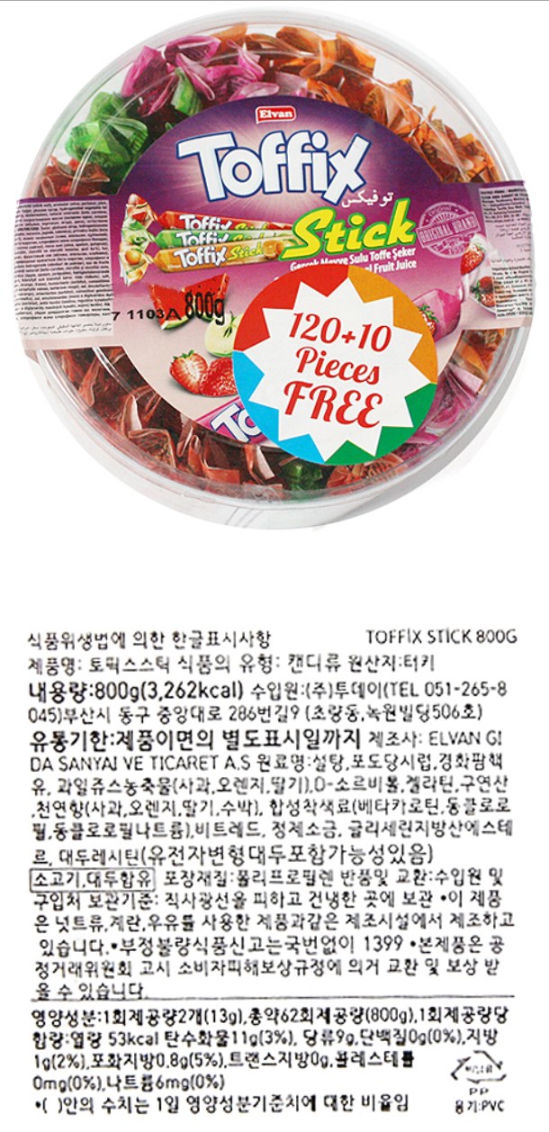 | 제품명 | 토픽스스틱 | 식품의 유형 | 캔디류 |