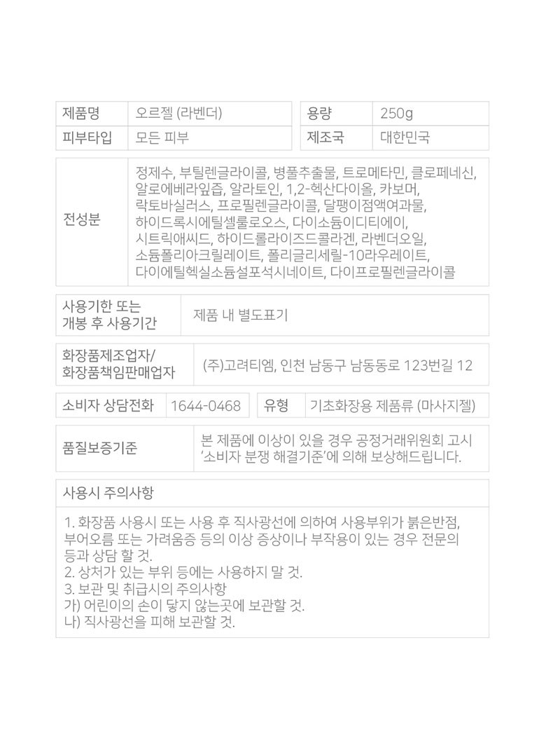 | 용량(중량) | 컨텐츠 참조 | 제품 주요 사양 | 모든 피부용 |