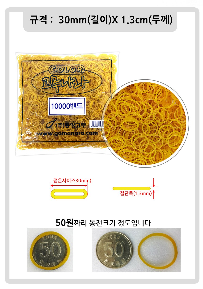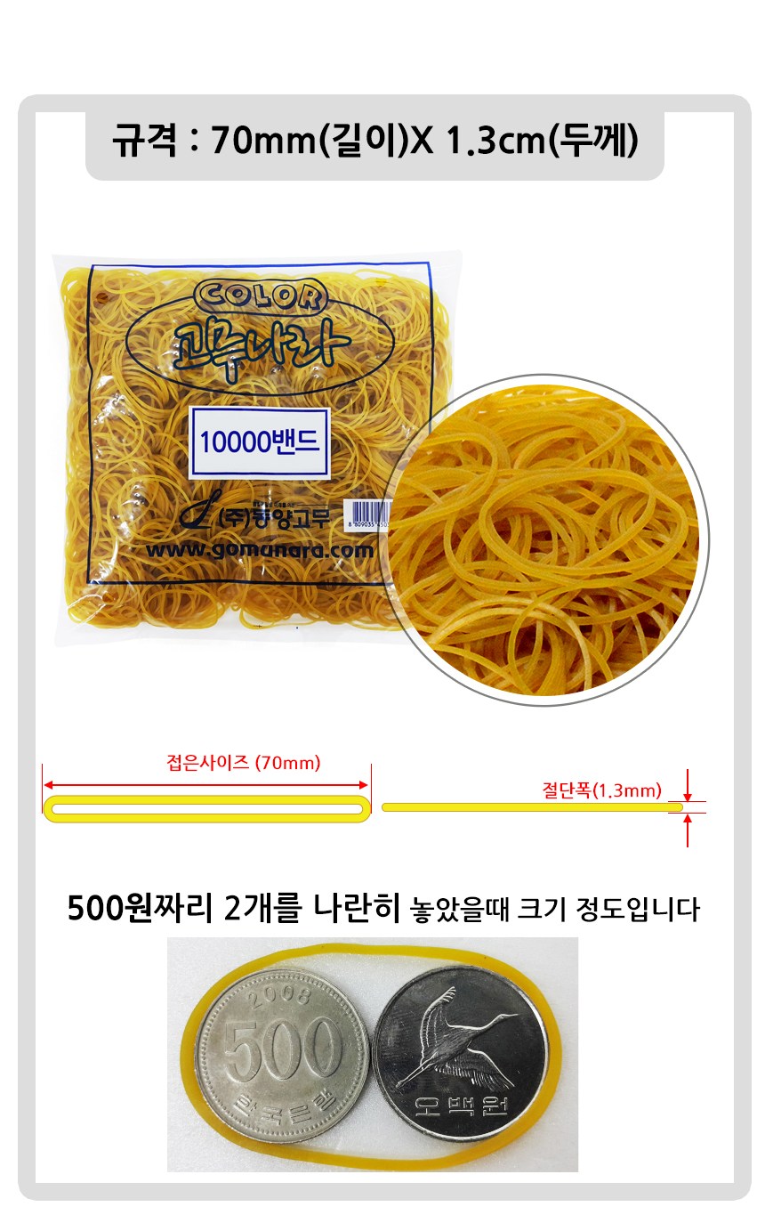 | 품명 및 모델명 | 고무나라 10000 고무밴드, 70 x 1.3mm | 인증/허가 사항 | 해당없음 |
