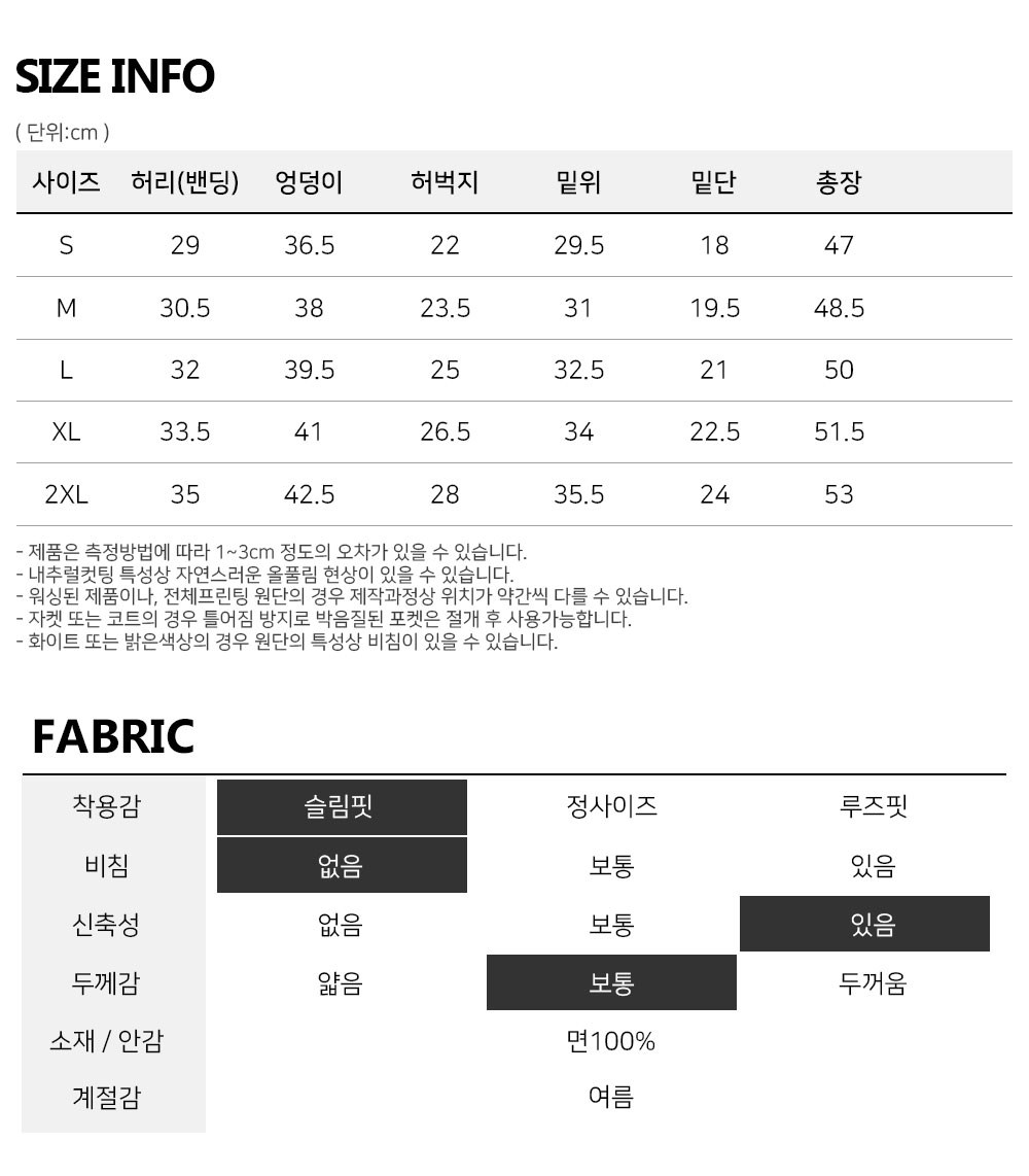 - 하의류 길이: 무릎 위 길이(반바지 길이)