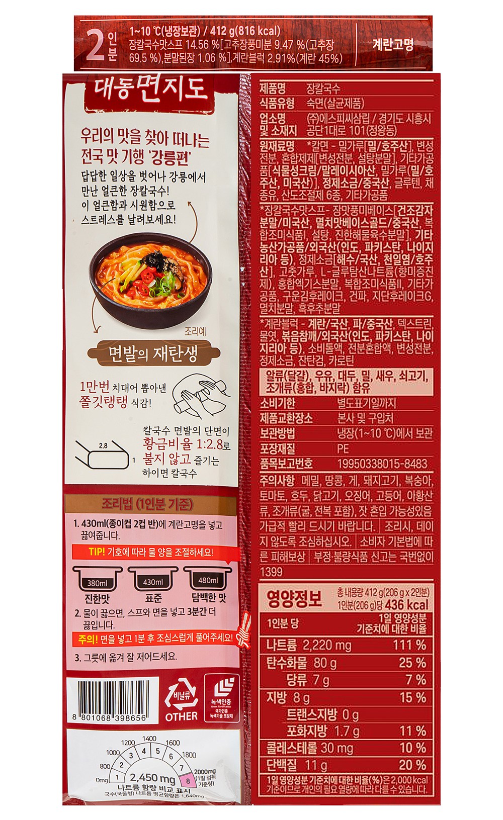 | 제품명 | 장칼국수 | 식품의 유형 | 컨텐츠 참조 |