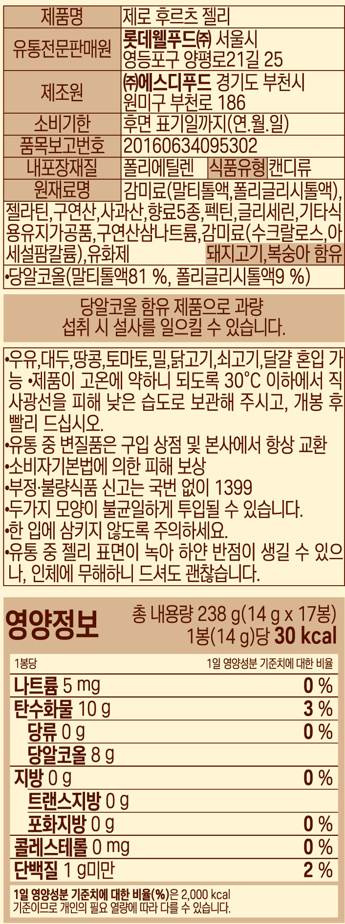 | 포장단위별 내용물의 용량(중량), 수량 | 238g x 18개 | 원재료명 및 함량 | 컨텐츠 참조 |