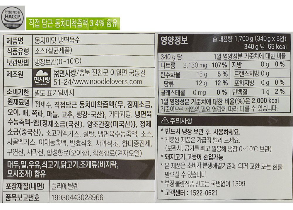 손쉽게 사용할 수 있는 동치미맛 냉면육수예요. 수고롭게 육수를 직접 끓일 필요 없이 삶은 면 위에 붓기만 하면 냉면이 완성돼죠. 시원한 물냉면이나 김치말이국수 등을 만들 때 활용해 보세요. 새콤달콤하면서도 깔끔한 감칠맛이 입맛을 돋울 거예요.
