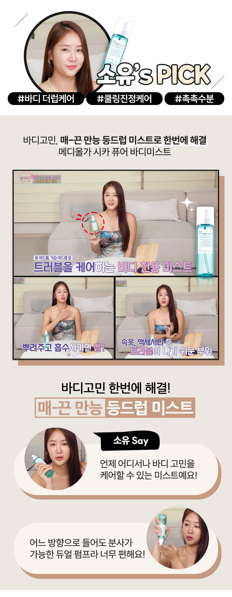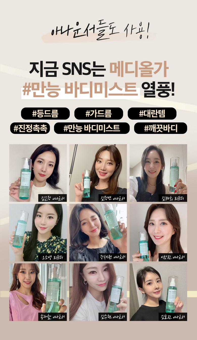 | 사용기한 또는 개봉 후 사용기간 | 제품 내 별도표기 | 사용방법 | 1일 2~3회 정도 샤워 후 물기를 닦고 약 20cm 거리를 둔 후 고민 부위에 분사해 줍니다. |