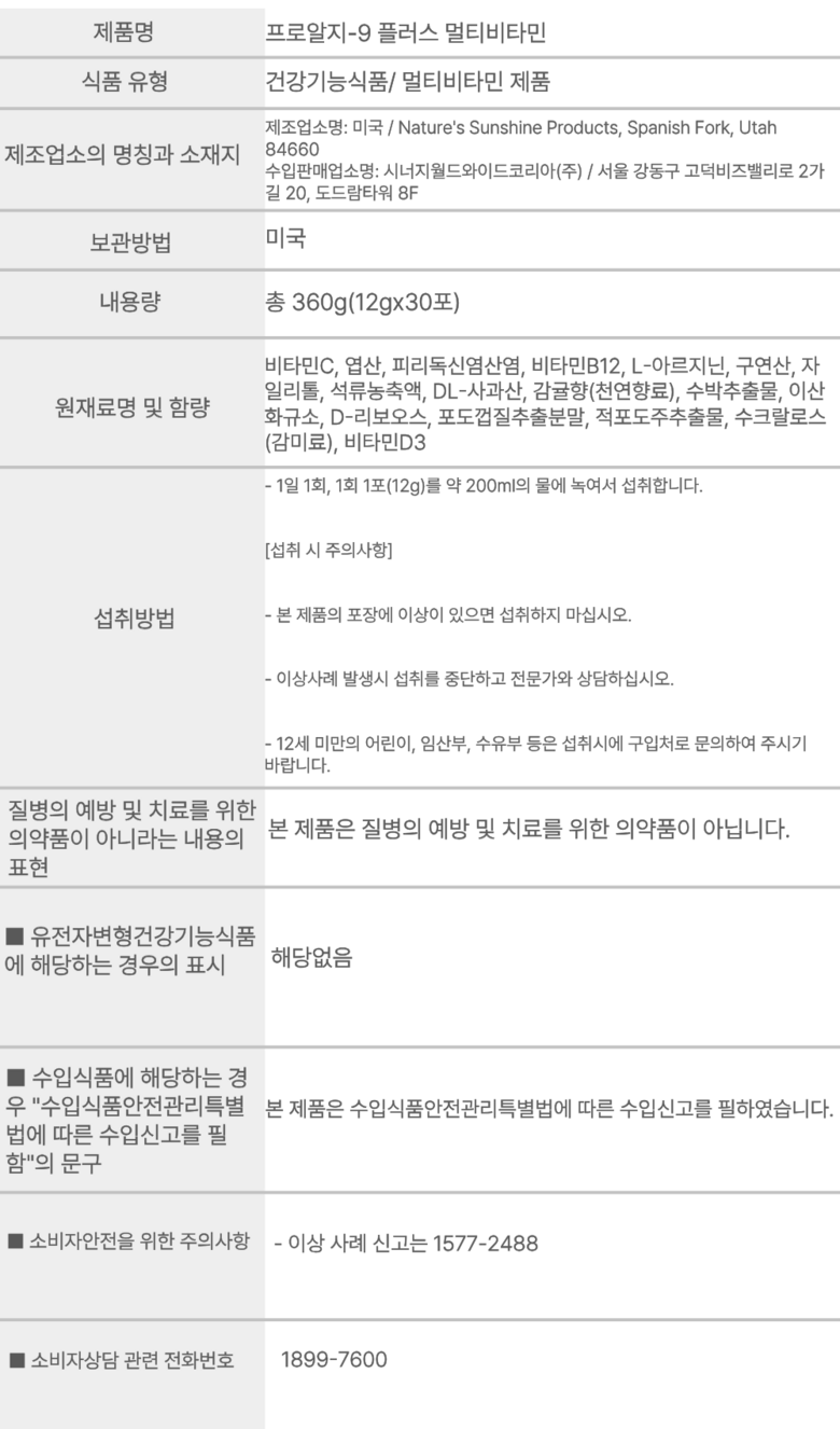 | 원료명 및 함량 | 상품 상세페이지 참조 | 영양정보 | 상품 상세페이지 참조 |