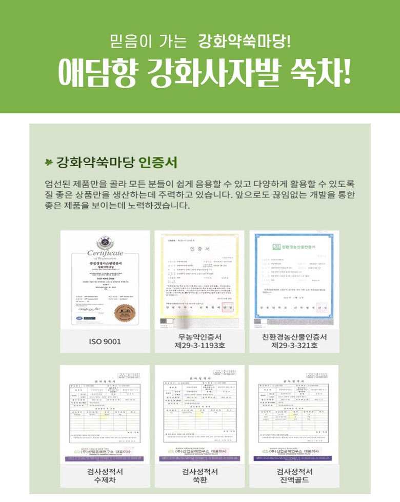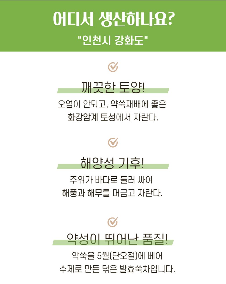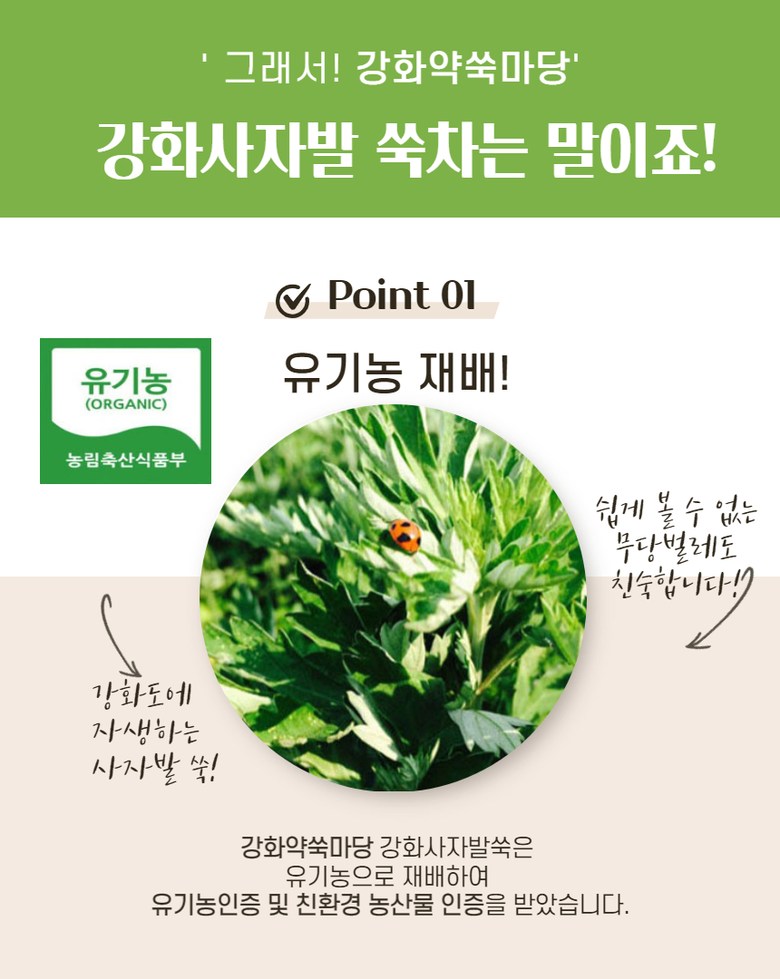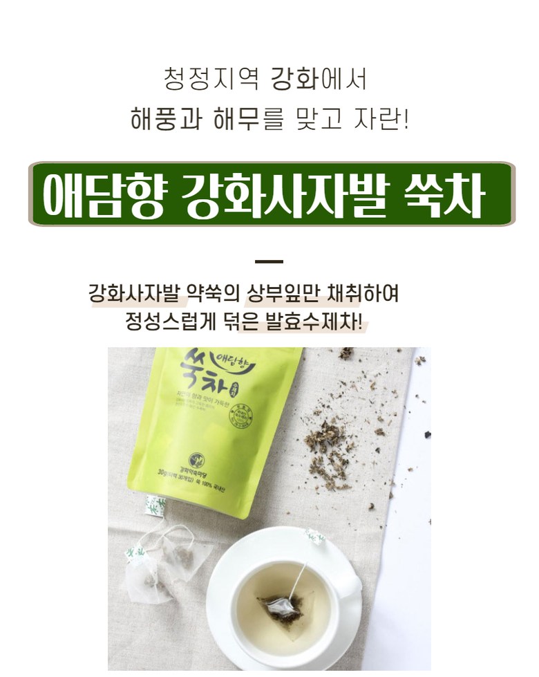 | 제품명 | 강화약쑥 티백쑥차 | 식품의 유형 | 상세페이지 참조 |