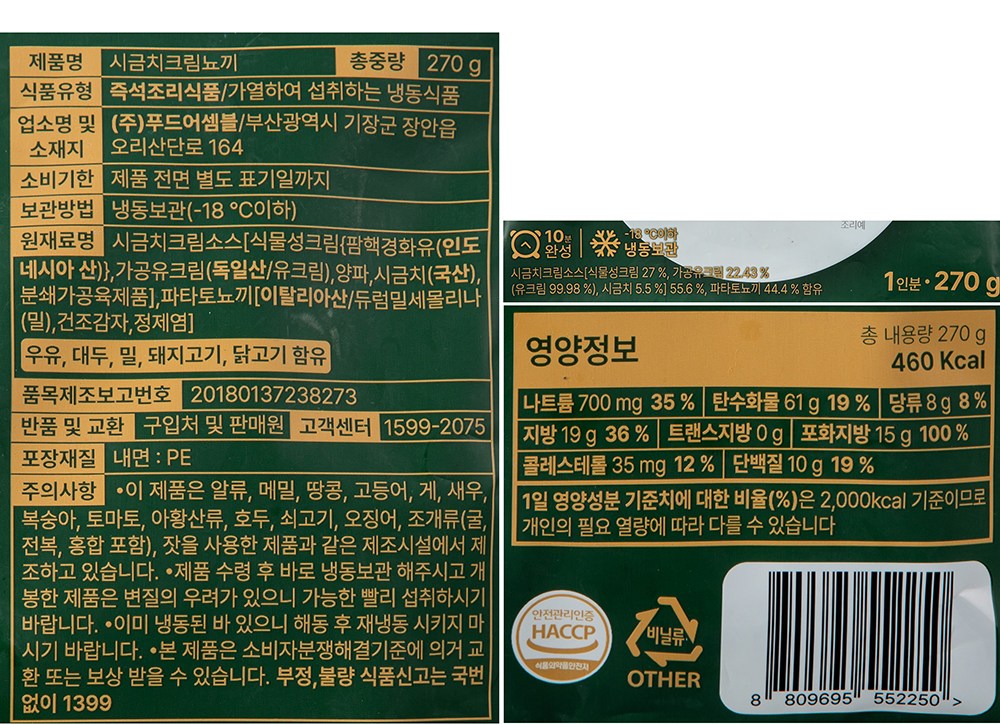 | 포장단위별 내용물의 용량(중량), 수량 | 270g x 2개,1개 | 원재료명 및 함량 | 컨텐츠참조 |