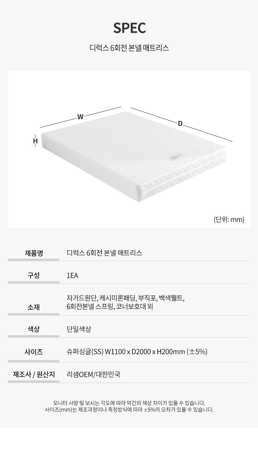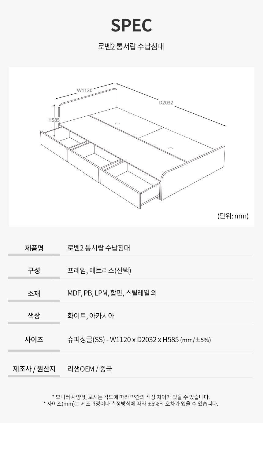 - 사이즈: 슈퍼싱글(1120 x 2032 x 585 mm)