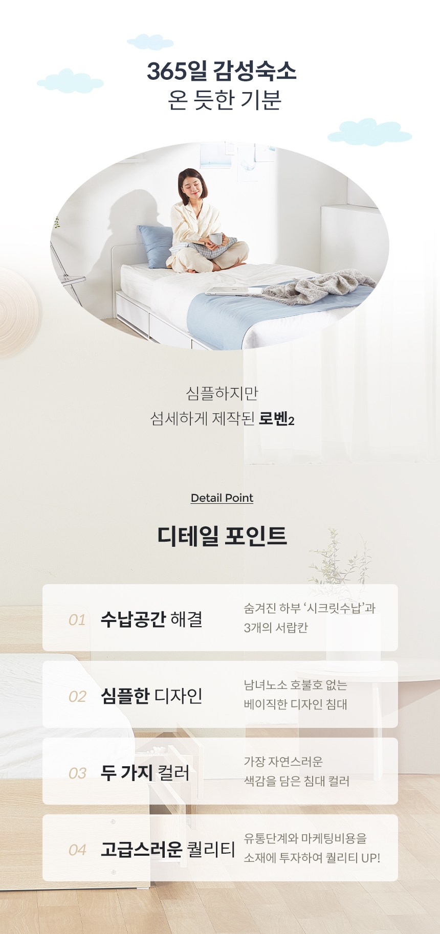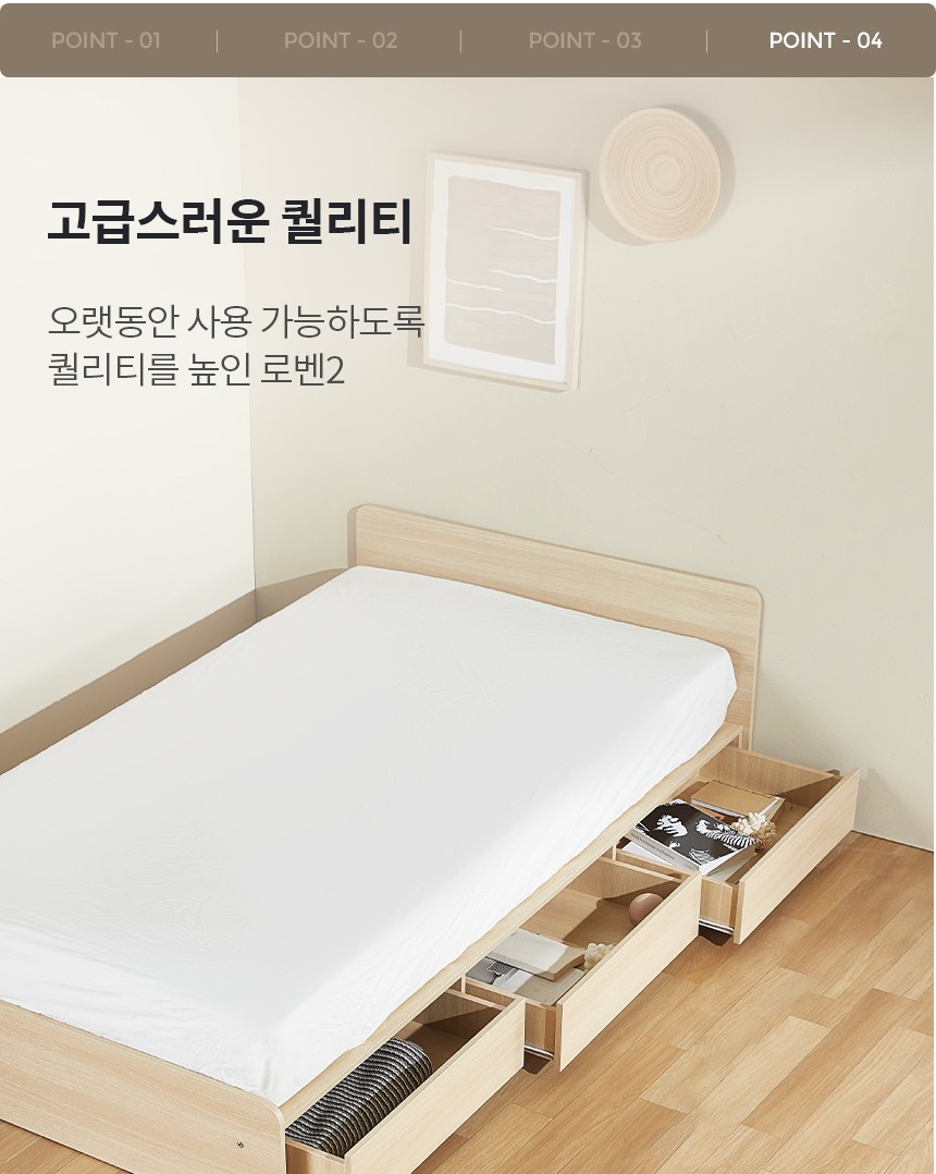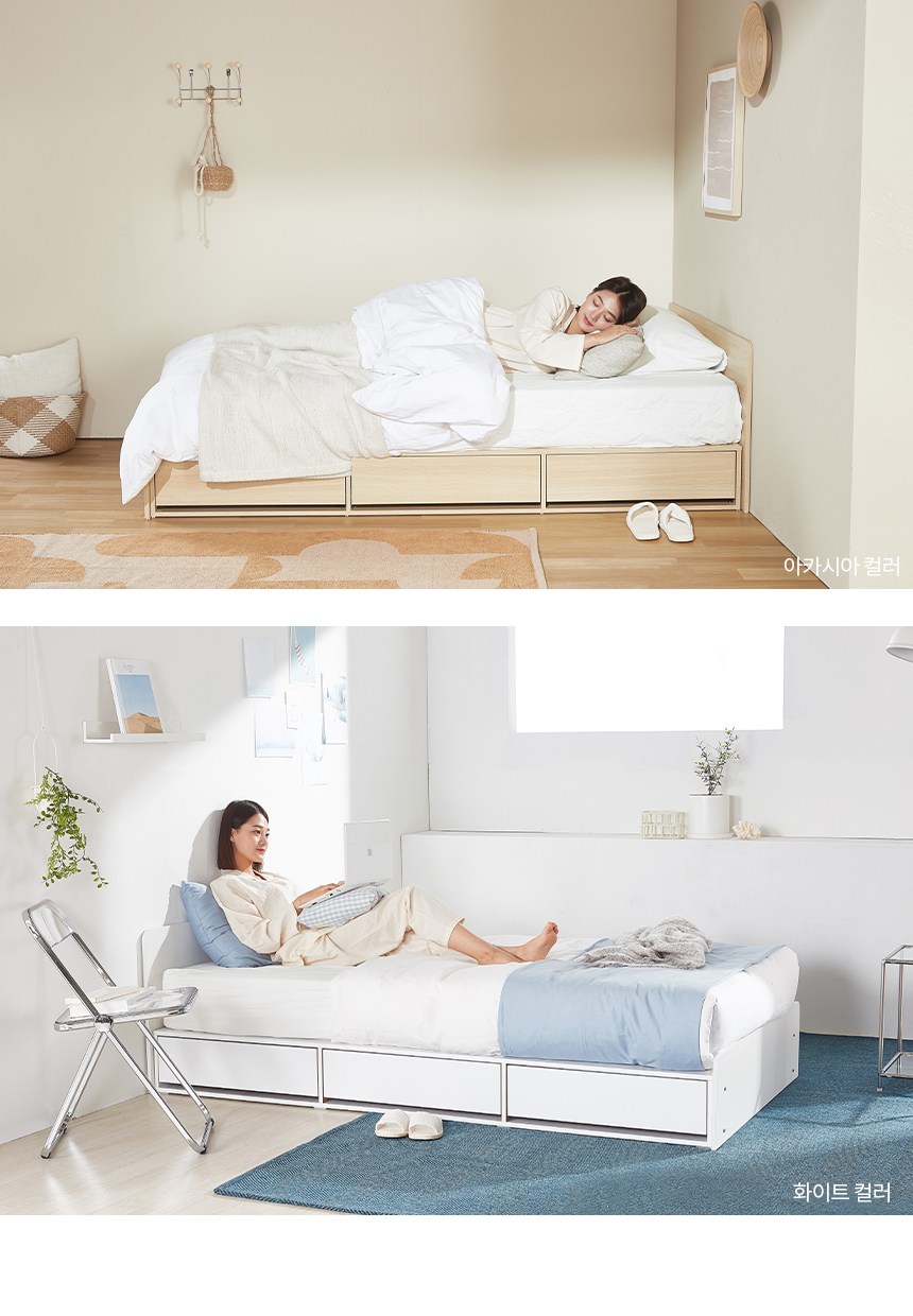 | 색상 | 아카시아 | 구성품 | 침대 헤드,풋 + 통서랍 + 통수납 + 매트리스 |
