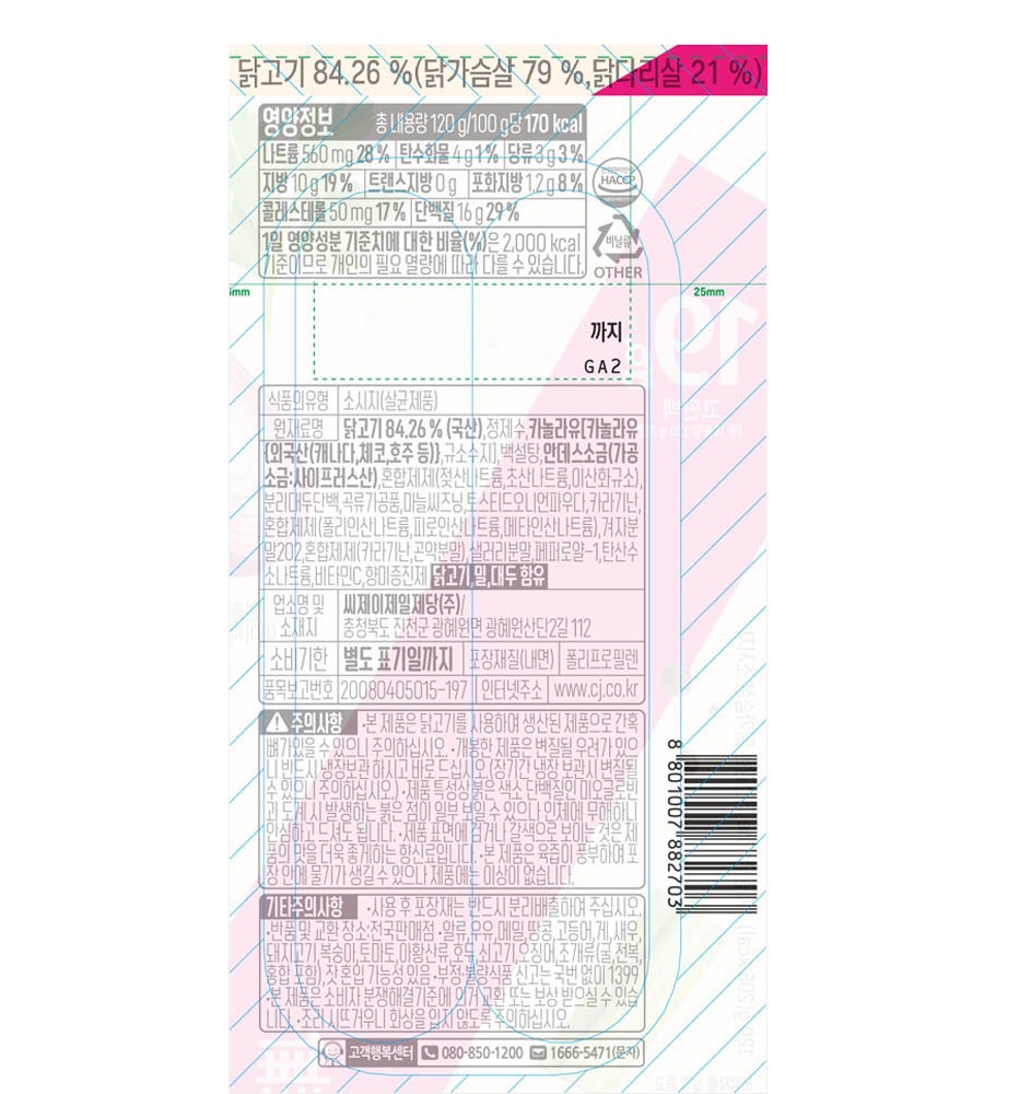 - 닭가슴살 종류: 소세지/핫바