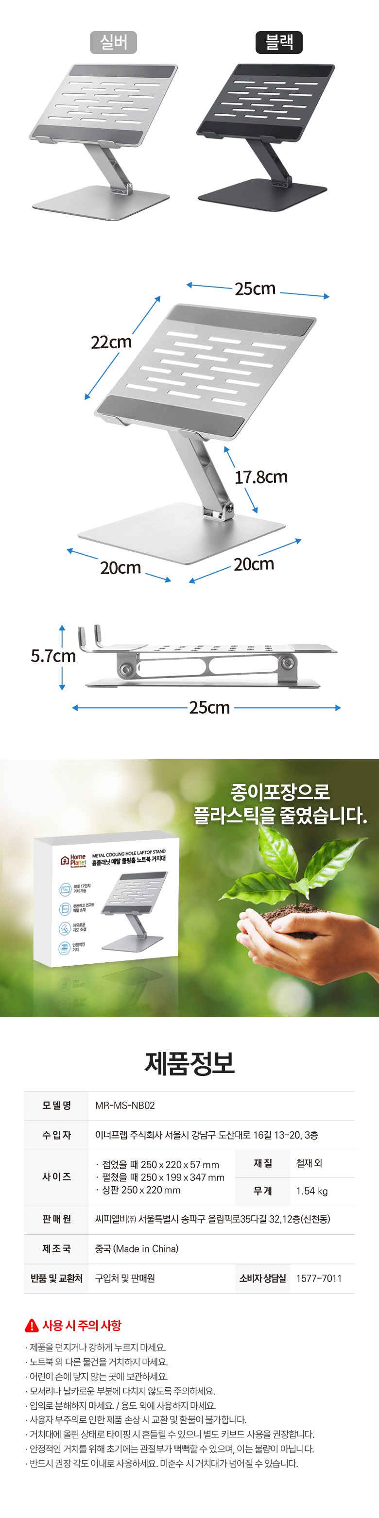 | 품명 및 모델명 | 홈플래닛 메탈 쿨링홀 노트북 거치대 | 인증/허가 사항 | 해당없음 |