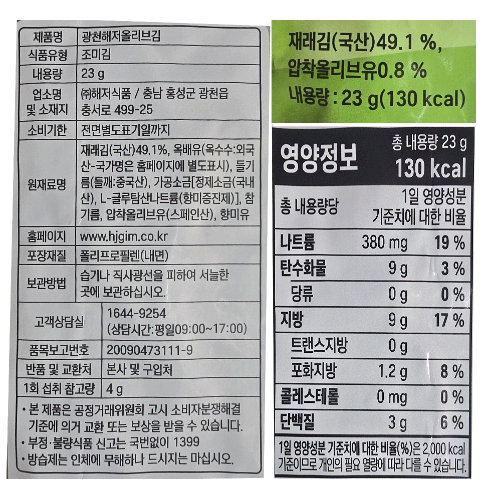 | 제품명 | 광천해저올리브김 | 식품의 유형 | 컨텐츠참조 |