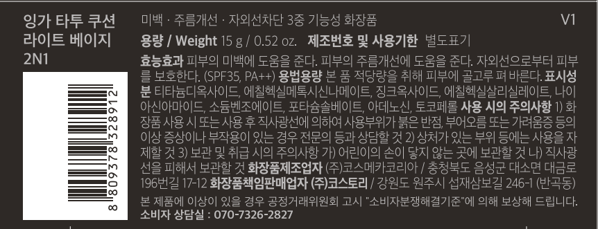 | 화장품제조업자, 화장품책임판매업자 및 맞춤형화장품판매업자 | 컨텐츠 참조 | 제조국 | 대한민국 |