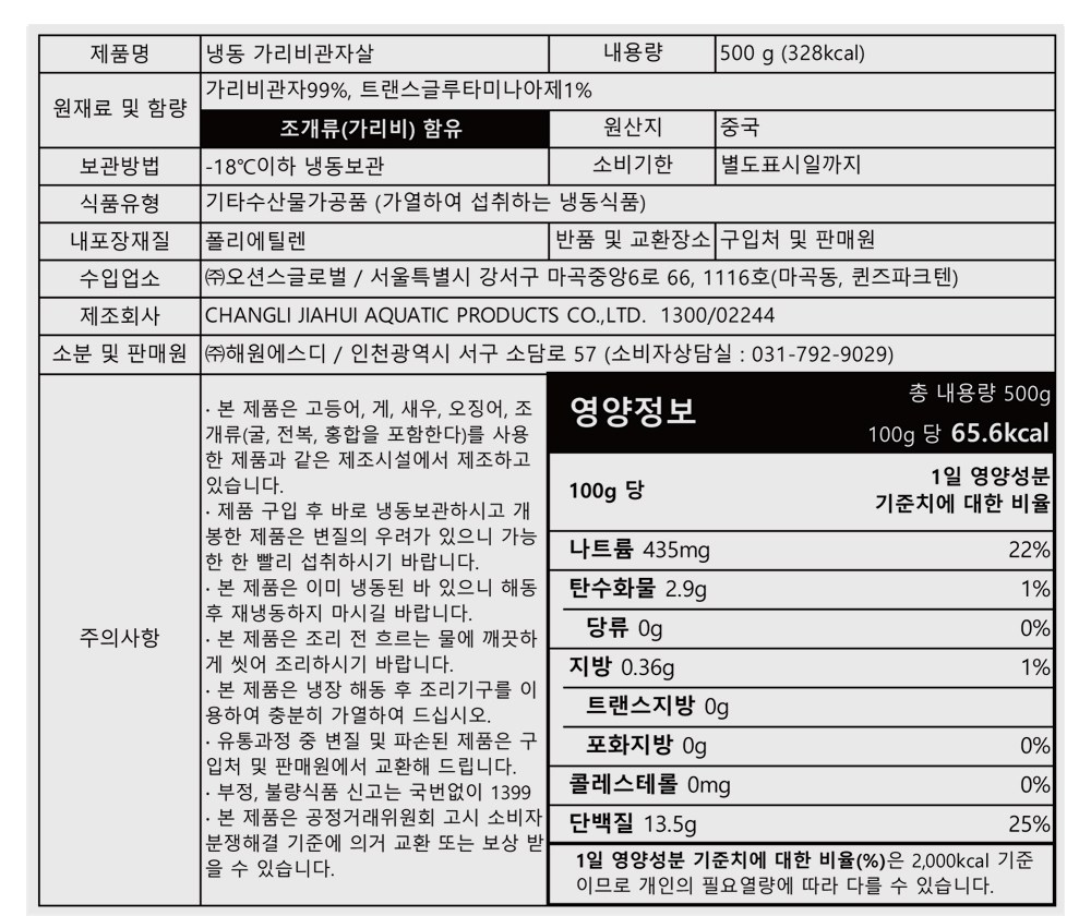 쫄깃쫄깃한 식감이 매력적인 냉동 가리비 관자살이에요. 깔끔하게 손질되어 있어 요리에 손쉽게 활용할 수 있지요. 노릇노릇하게 구워도 맛있고, 파스타나 솥밥에 넣어도 훌륭하답니다. 은은한 단맛으로 입맛을 사로잡을 거예요.