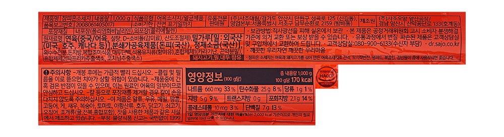 | 제품명 | 참피온소세지 | 식품의 유형 | 컨텐츠 참조 |